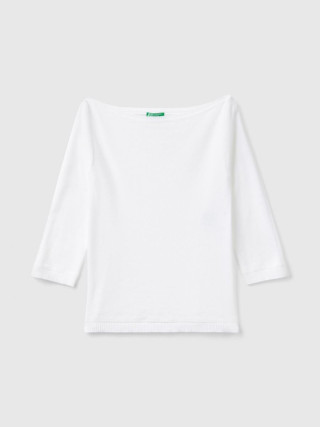 Benetton ženski džemper od čistog pamuka sa čamac izrezom i rukavima 3/4 dužine. Jednostavan, ženstven i svestran.