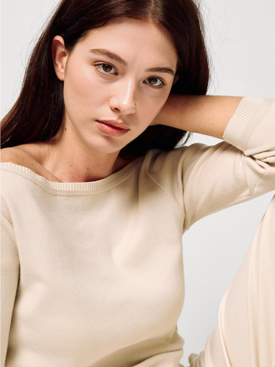 Benetton ženski džemper od čistog pamuka sa čamac izrezom i rukavima 3/4 dužine. Jednostavan, ženstven i svestran.