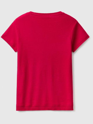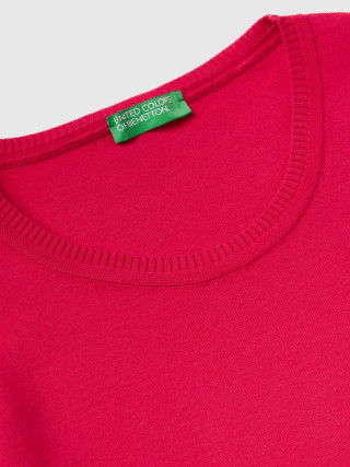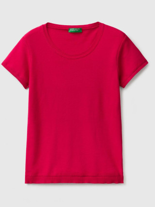 Benetton ženski džemper sa okruglim izrezom kratkih rukava od čistog triko pamuka. Udoban i svestran, pristaje uz mnoge odevne kombinacije.