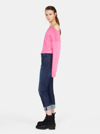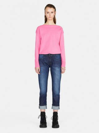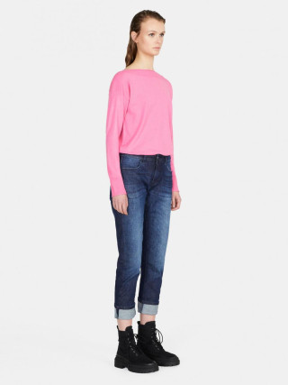 Sisley ženski džemper od mešavine viskoze, sa izrezom za čamac i rebrastim detaljima na spuštenim ramenima.