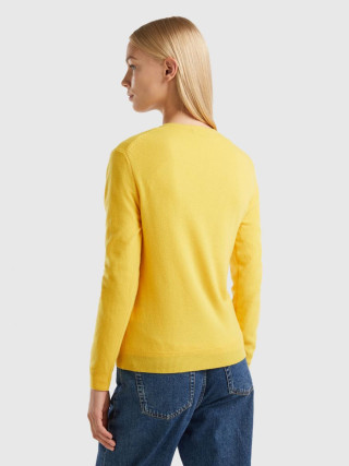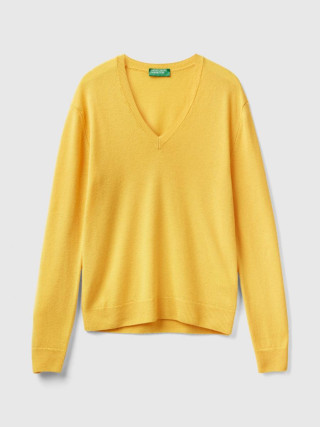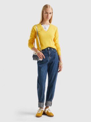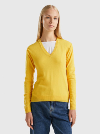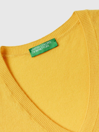 Benetton ženski topli džemper sa V-izrezom od čiste merino vune, lagan i prijatan na dodir. Osnovna i svestrana odeća, pogodna za različite prilike upotrebe. Prisustvo logotipa Voolmark garantuje visok kvalitet odevnih predmeta kroz primenu i praćenje specifičnih standarda u proizvodnji vune, od uzgoja do finalnog proizvoda