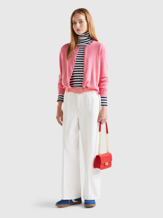 Benetton ženski kardigan dugih rukava od mešavine viskoze, kašmira i vune. Regular fit model, mandarinska kragna i prednje kopčanje sa dugmićima. Topao i mekan, ali istovremeno lagan, to je svakodnevna, udobna odeća.