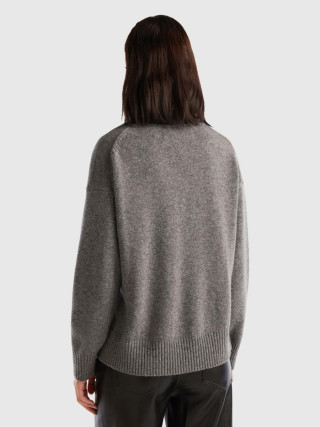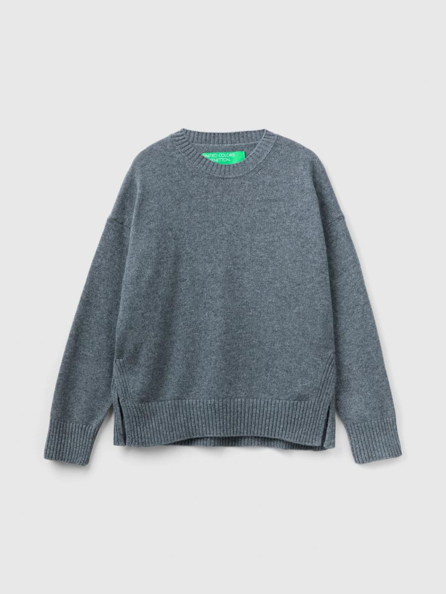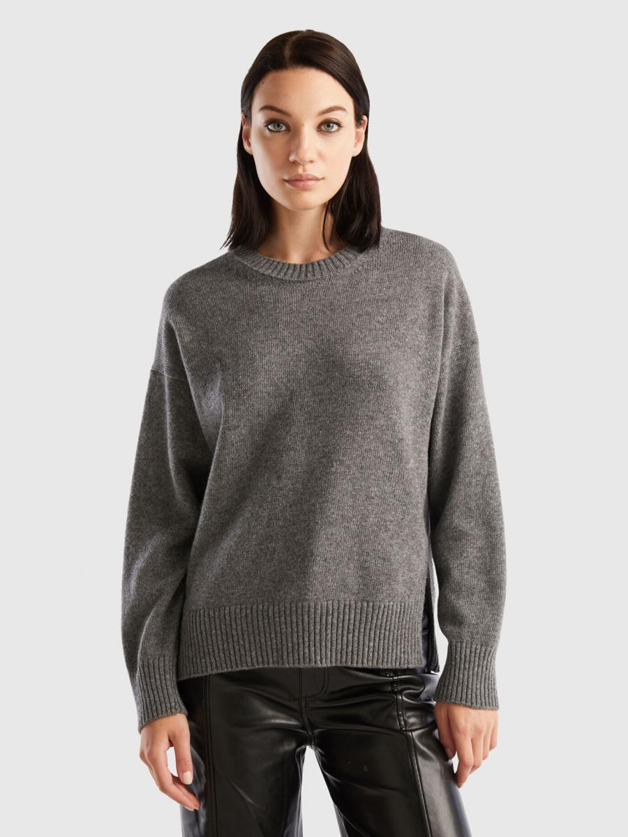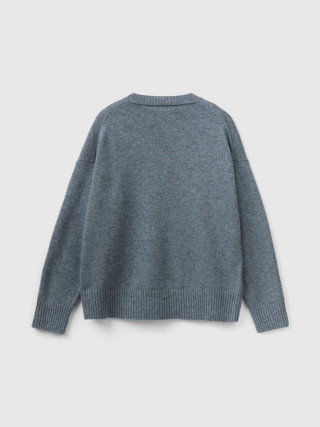 Benetton ženski džemper sa okruglim izrezom od meke mešavine vune sa boxy krojem. Dugi rukavi, spuštena ramena i prorezi sa strane. Ležeran i opušten stil, bez previše detalja.