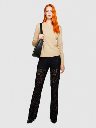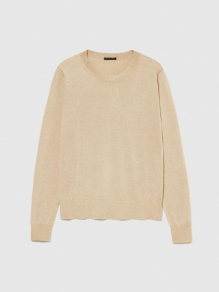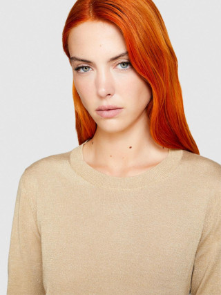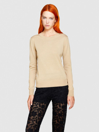 Sisley ženski jednobojni džemper od mešavine vune sa umetcima od lureks konca. Rebrasti pleteni okrugli izrez i dugi rukavi sa blago spuštenim ramenima.