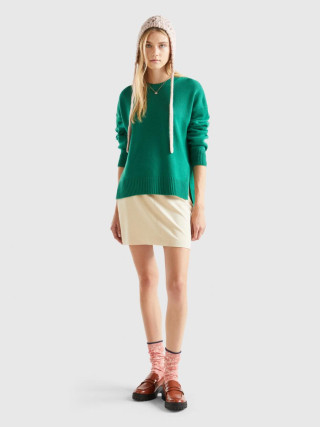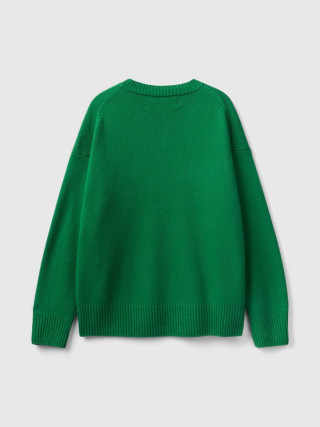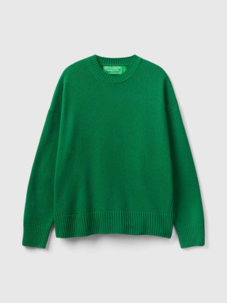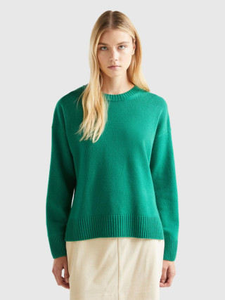 Benetton ženski džemper sa okruglim izrezom od meke mešavine vune sa boxy krojem. Dugi rukavi, spuštena ramena i prorezi sa strane. Ležeran i opušten stil, bez previše detalja.