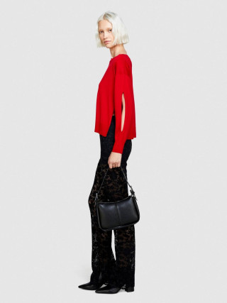 Sisley ženski jednobojni džemper od mešavine vune, sa čamac izrezom, dugim rukavima sa bočnim otvorima i prorezom na levoj strani.