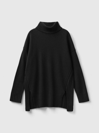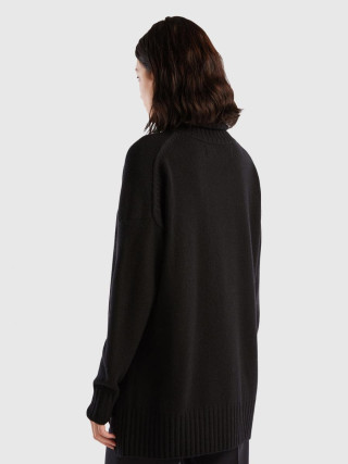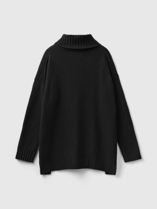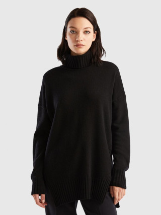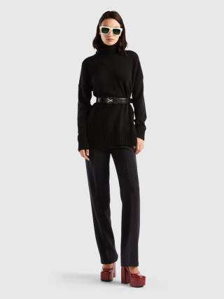 Benetton ženski džemper od meke mešavine vune opuštenog kroja. Visok vrat, dugi rukavi i prorezi sa strane. Ovaj proizvod je napravljen na održiv način zahvaljujuc´i projektu VASATEKS, koji omoguc´ava da se voda iz proizvodnog ciklusa povrati i ponovo koristi u narednim procesima.