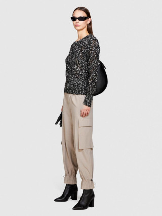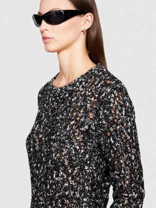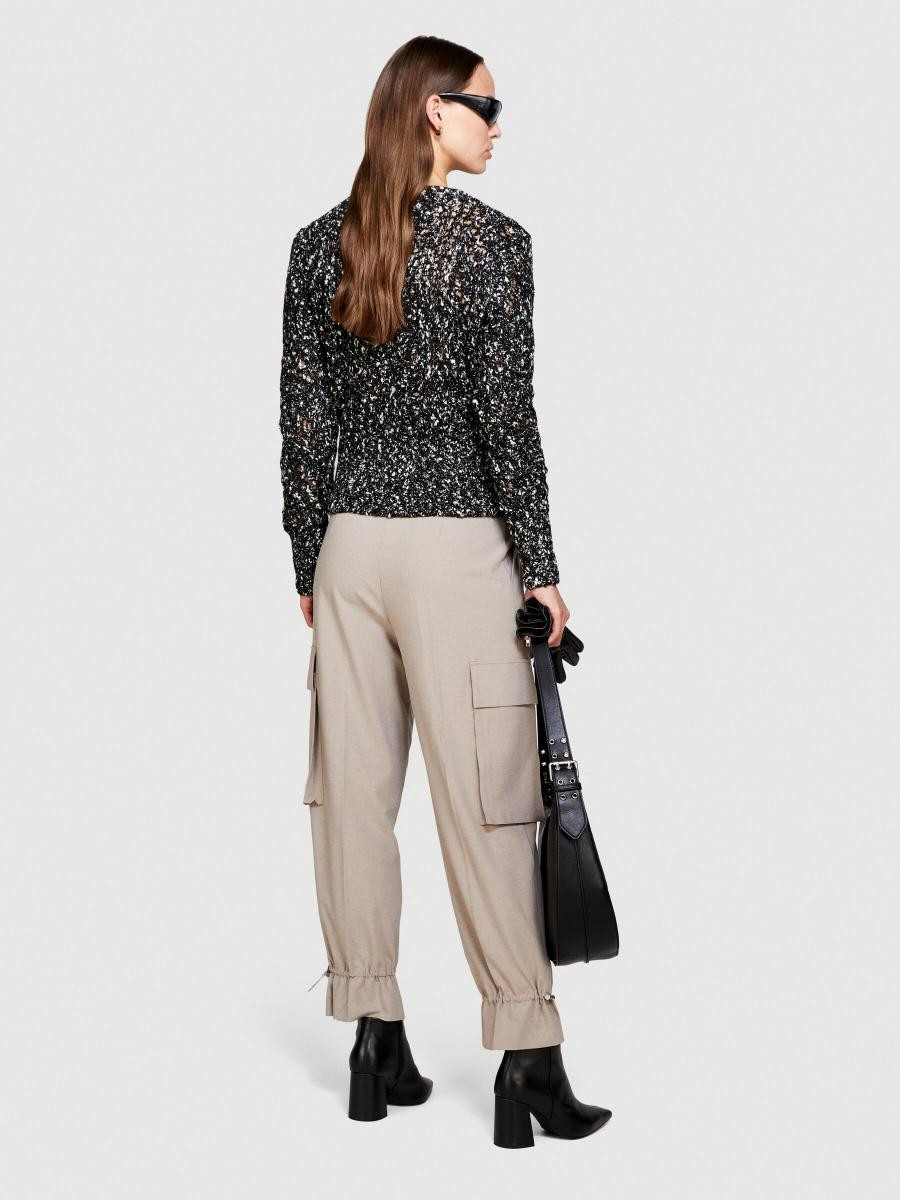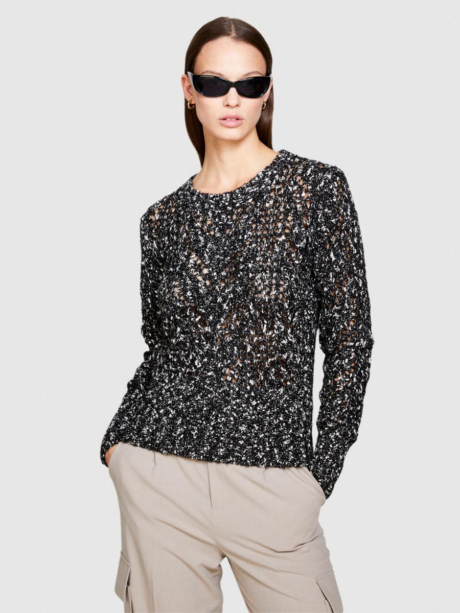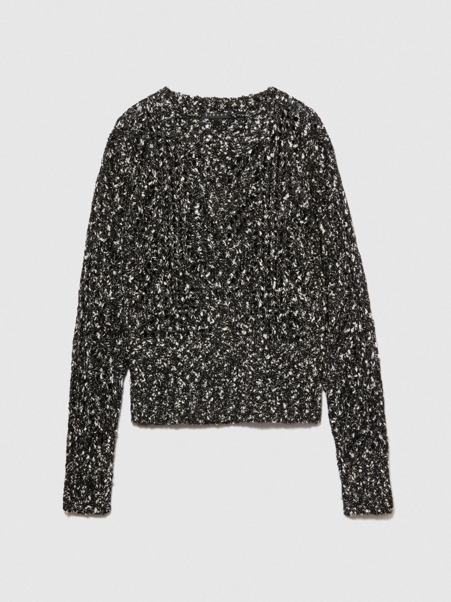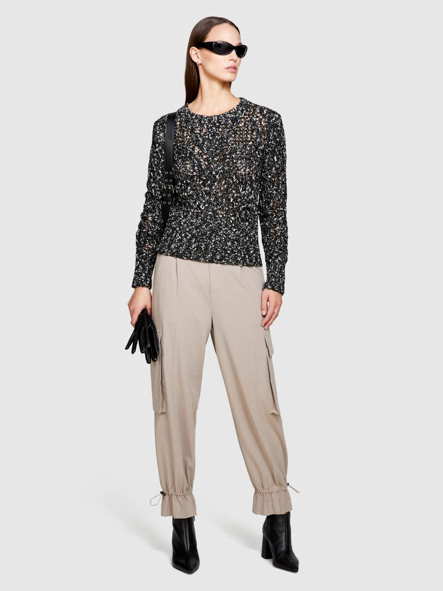Sisley ženski džemper od mešavine vune i pamuka sa efektom bukle. Okrugli izrez, široki dugi rukavi i visok porub.