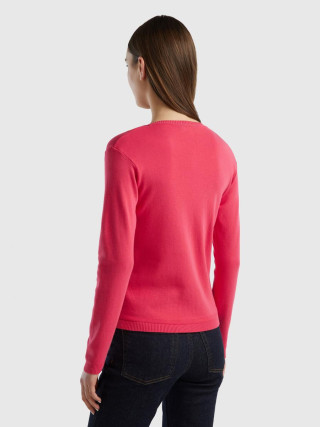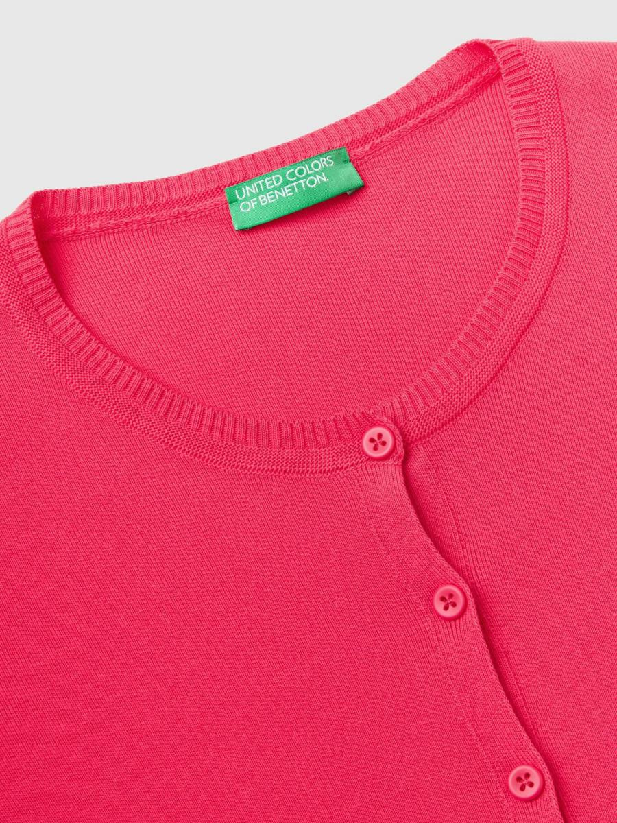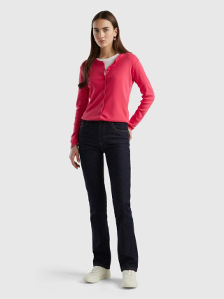 Benetton ženski mekani džemper sa okruglim izrezom dugih rukava od 100% pamuka sa prednjim otvaranjem dugmićima. Obavezna stvar u ormaru svake žene.