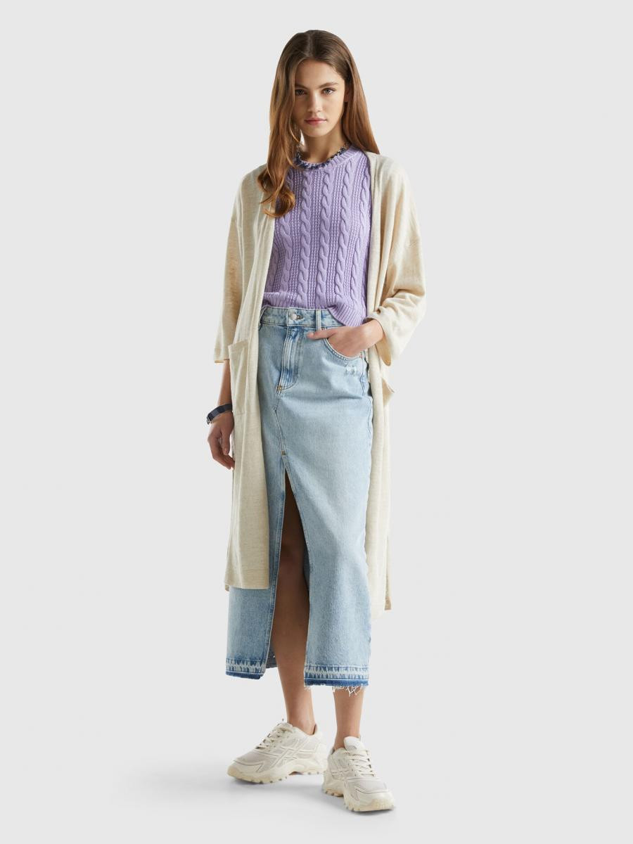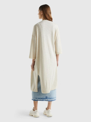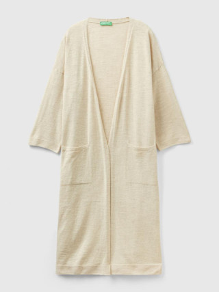 Benetton ženski dugi kardigan od mešavine pamuka i lana sa 3/4 rukavima. Bočni prorezi na donjim delu i prednji našiveni džepovi. Lagan i svestran, za udoban, ali ženstven izgled.
