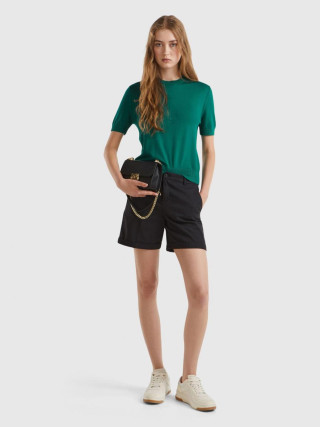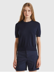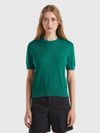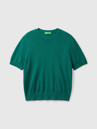 Benetton ženski džemper sa okruglim izrezom kratkih rukava od mešavine pamuka i Modala, regular fit model. Svestran i sa osnovnim dizajnom, može se nositi sam ili ispod jakne.