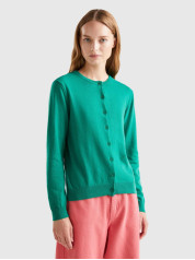Benetton ženski kardigan dugih rukava od mešavine viskoze, kašmira i vune. Regular fit model, mandarinska kragna i prednje kopčanje sa dugmićima. Topao i mekan, ali istovremeno lagan, to je svakodnevna, udobna odeća.