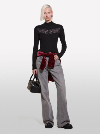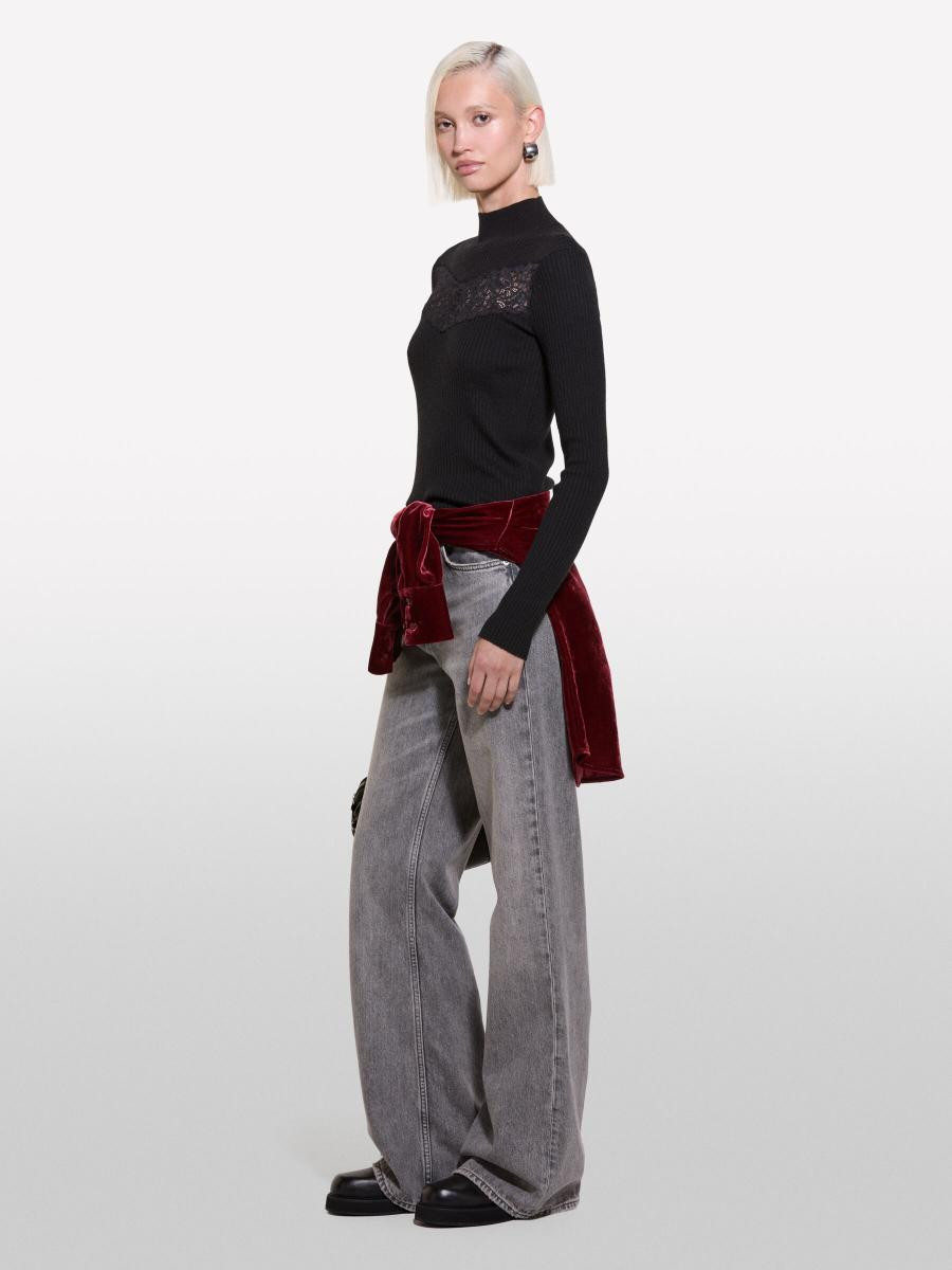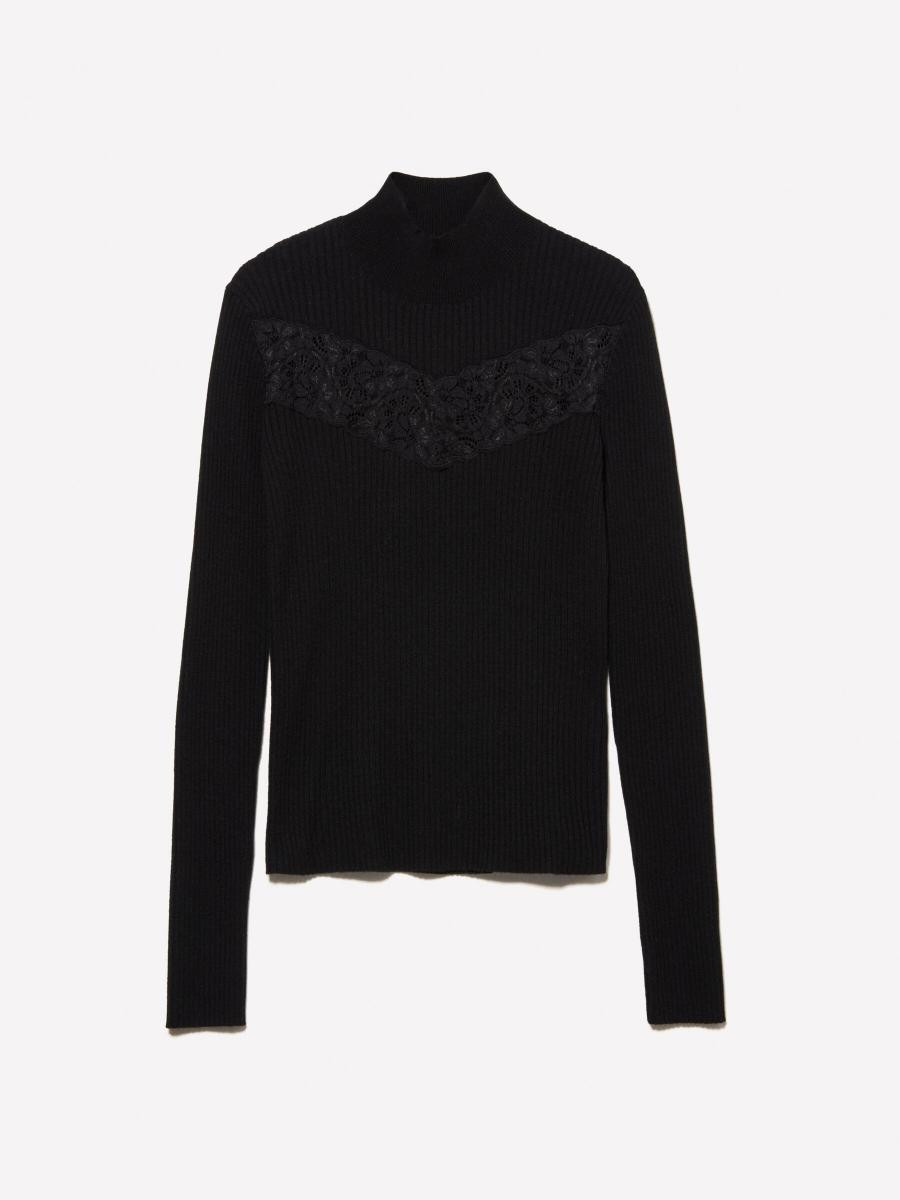 Sisley ženski džemper od rebraste mešavine vune, dugim rukavima i prednjim umetkom od čipke.
