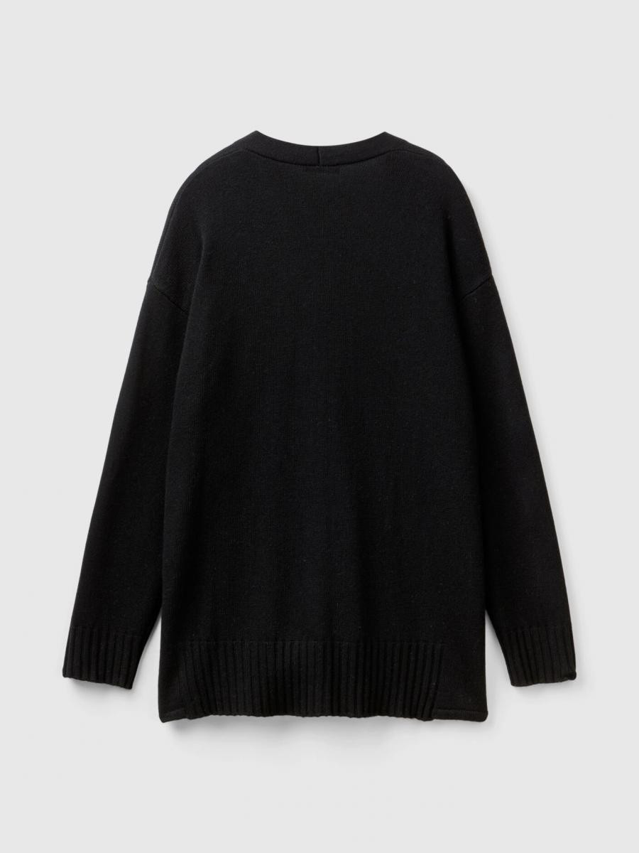 Benetton ženski kardigan dugih rukava od meke vune i viskozne tkanine. Široki kroj, V-izrez i prednje kopčanje sa dugmadima. Rebrasti detalj na donjim delu i prednjim našivenim džepovima. .
