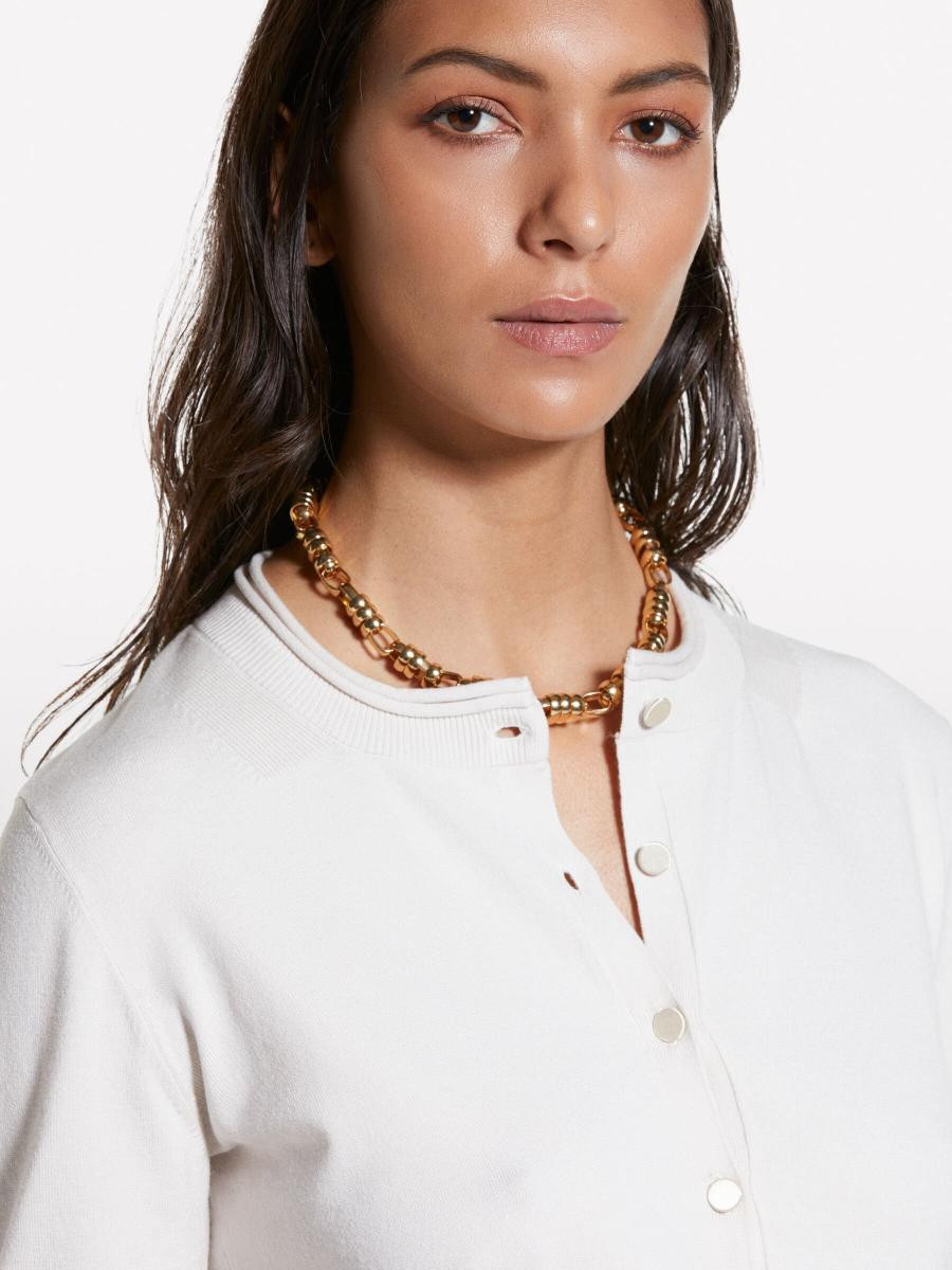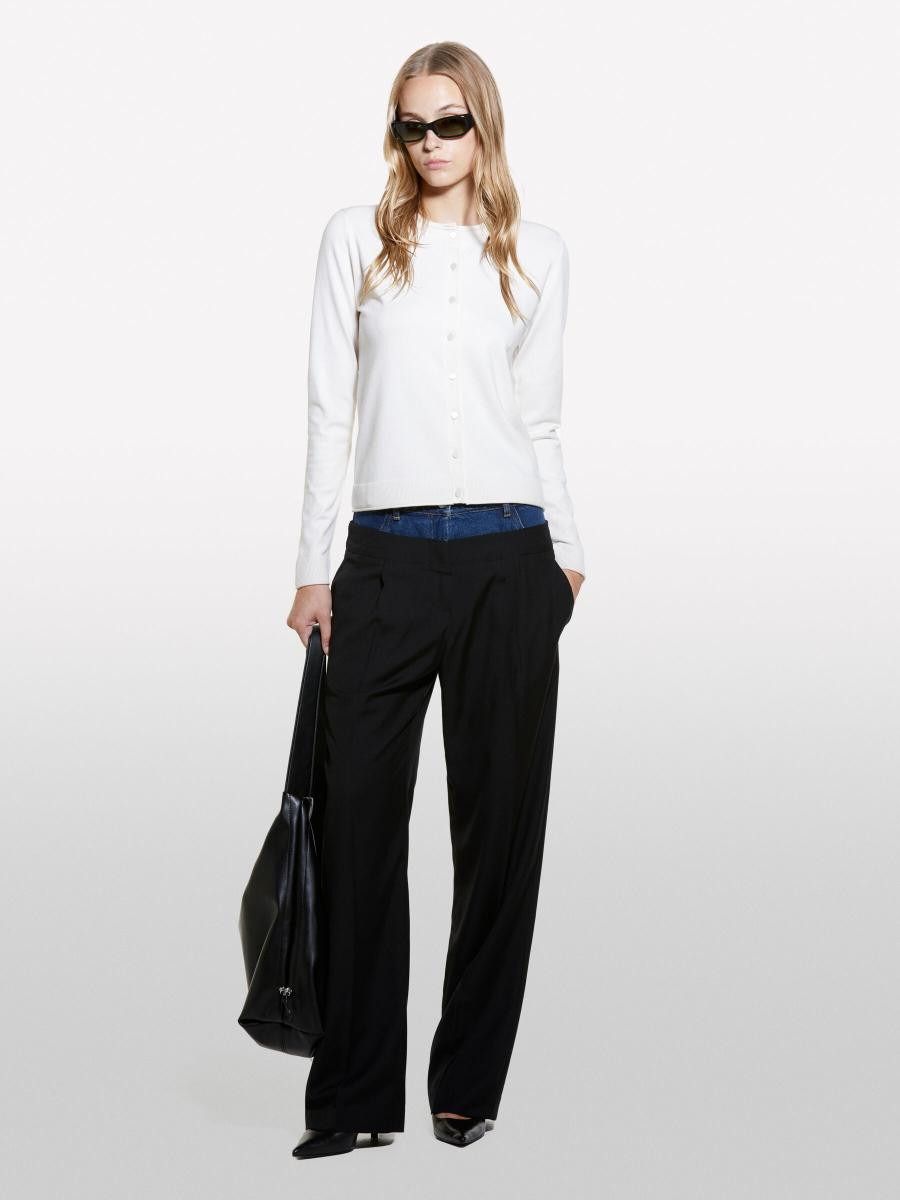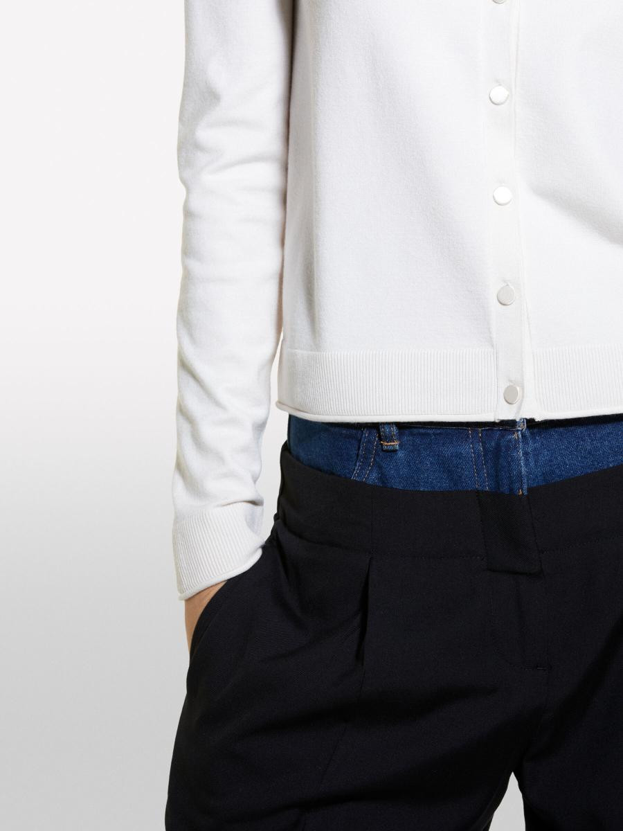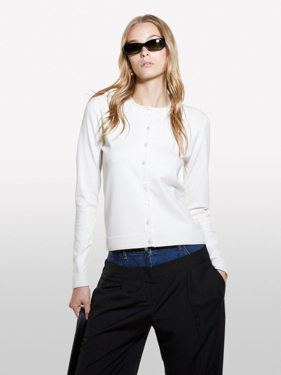 Sisley ženski kardigan od mešavine viskoze, sa okruglim izrezom, prednjim kopčanjem na dugmad i dugim rukavima.