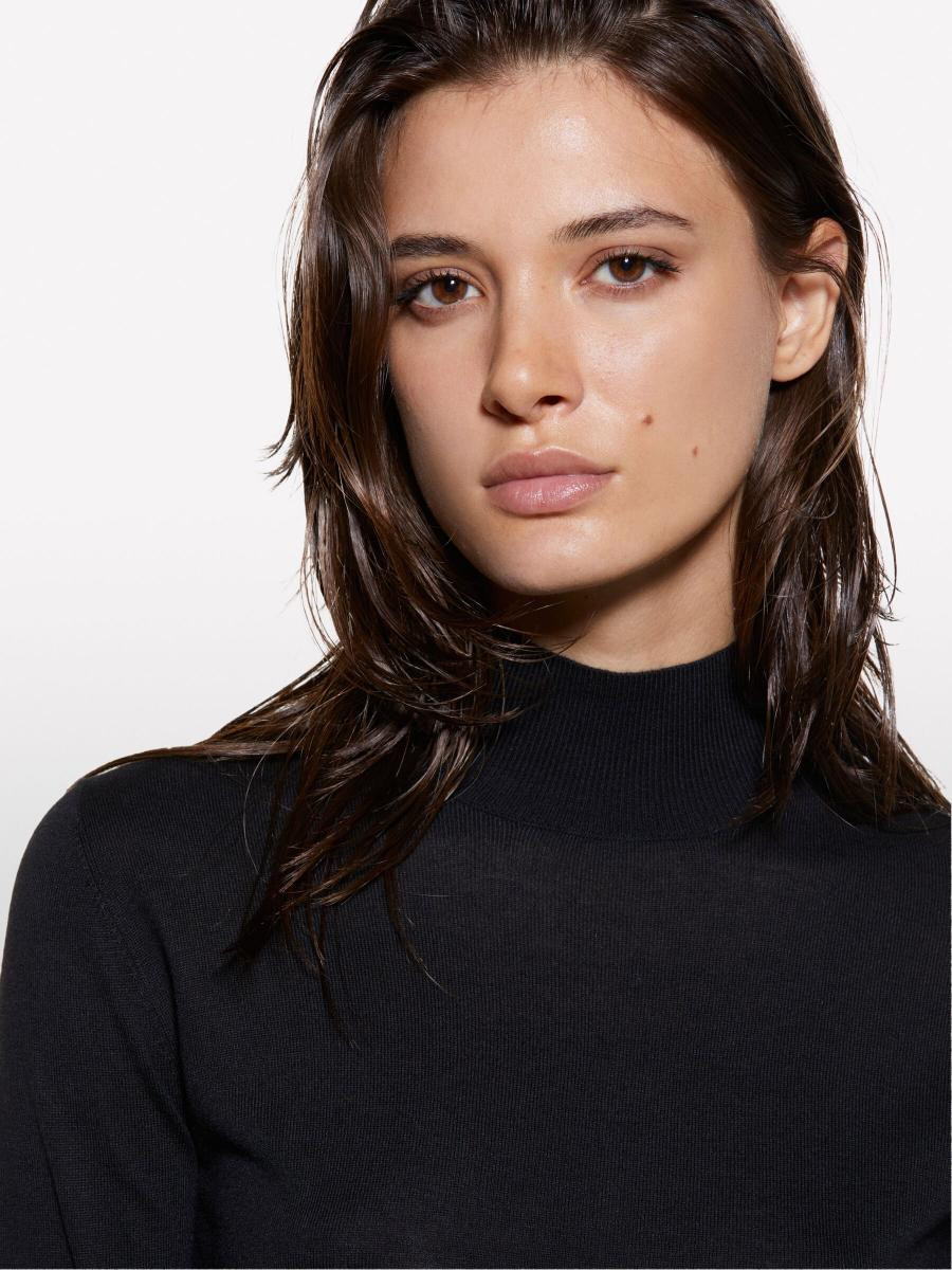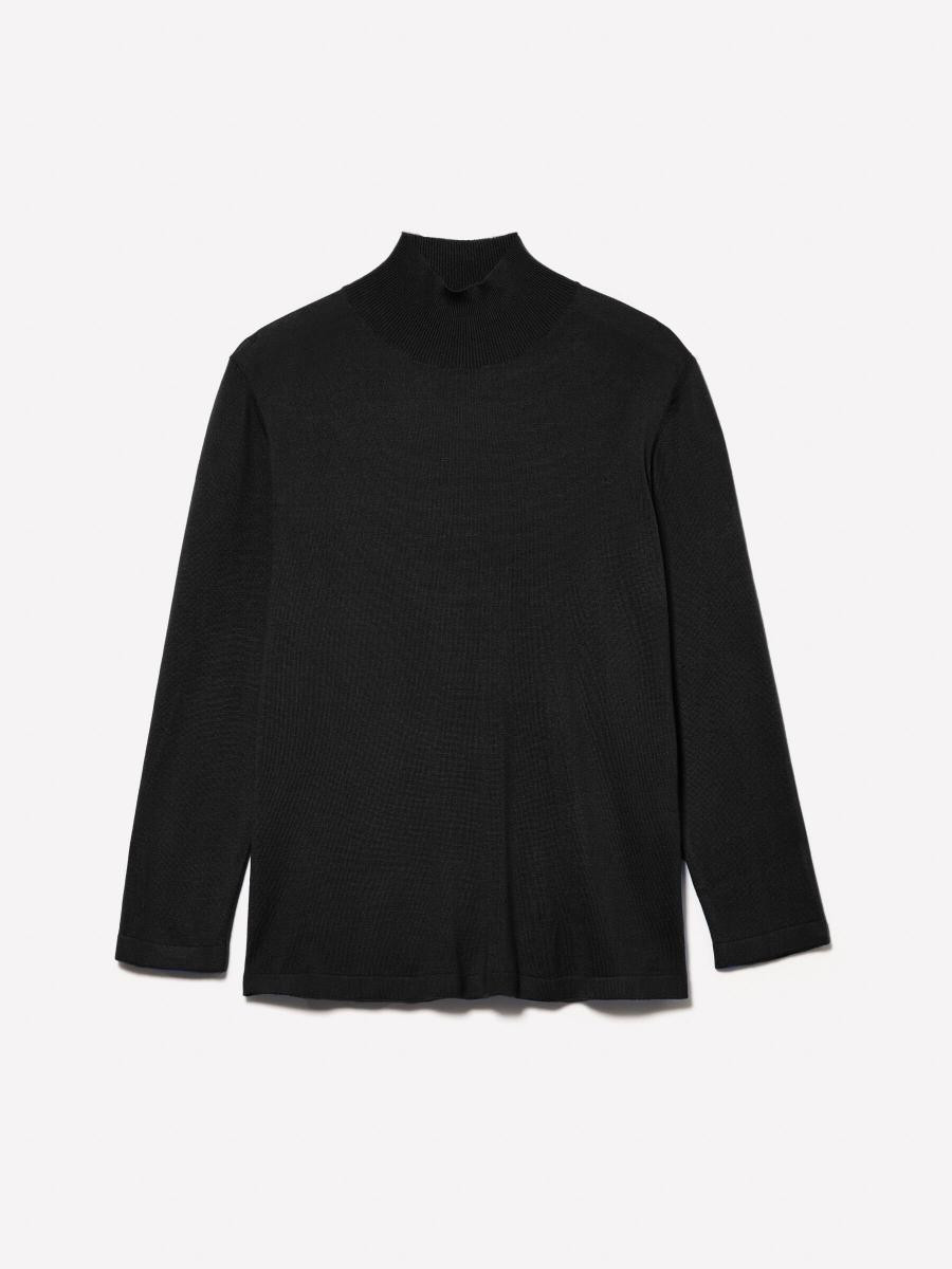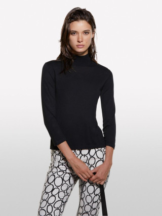 Sisley ženski džemper regular fit kroja od mešavine viskoze i svile, sa visokom rebrastom kragnom i 3/4 rukavima.