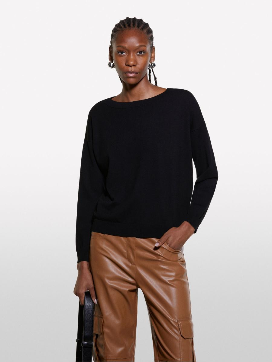Sisley ženski džemper regular fit kroja od mešavine viskoze, sa dekolteom i dugim rukavima.
