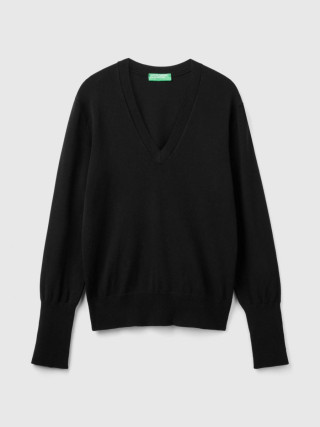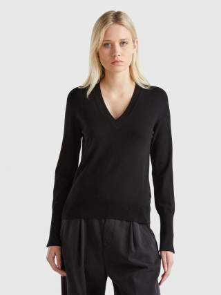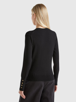 Benetton ženski džemper od mekog viskoznog prediva sa V-izrezom. Slim fit kroja i dugih rukava sa ukrasnim dugmadima i prorezom sa strane. Za casual-šik izgled uvek u korak sa vremenom.