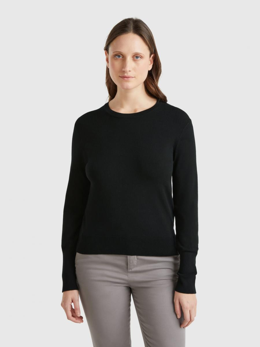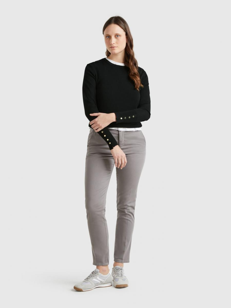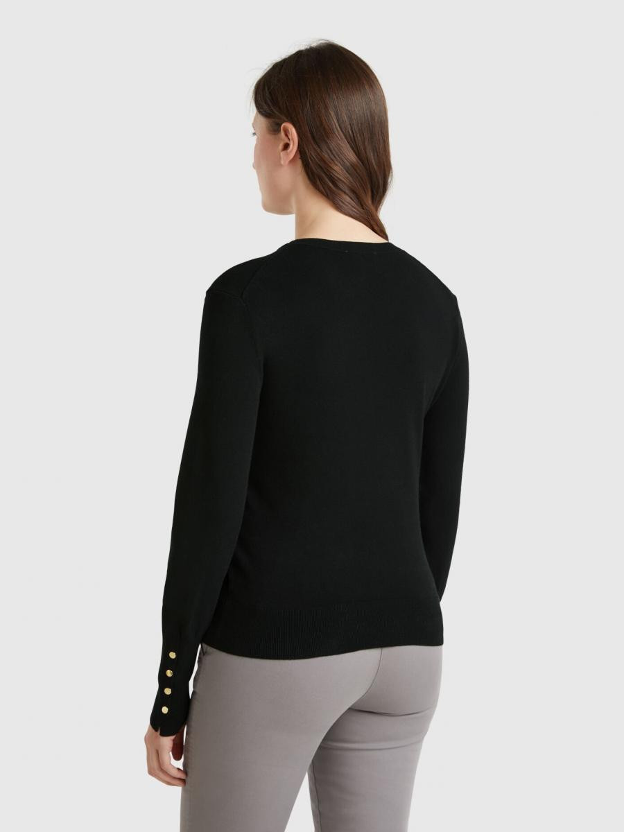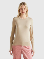 Benetton ženski džemper sa okruglim izrezom od mekog viskoznog prediva. Tanak kroj i dugi rukavi sa ukrasnim dugmadima na dnu. Za casual-šik izgled uvek u korak sa vremenom.