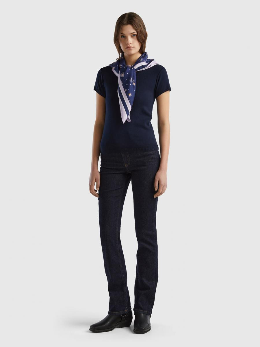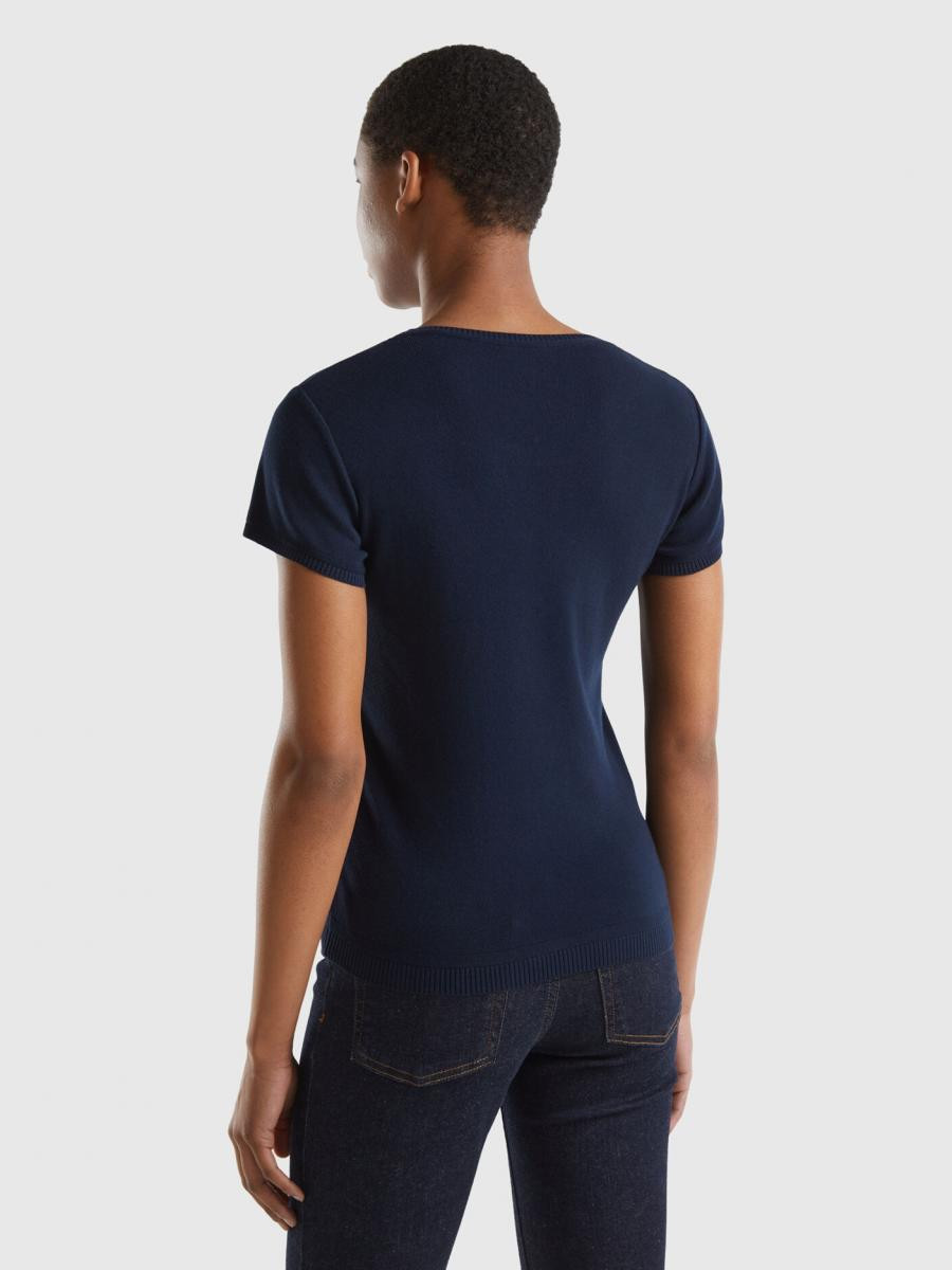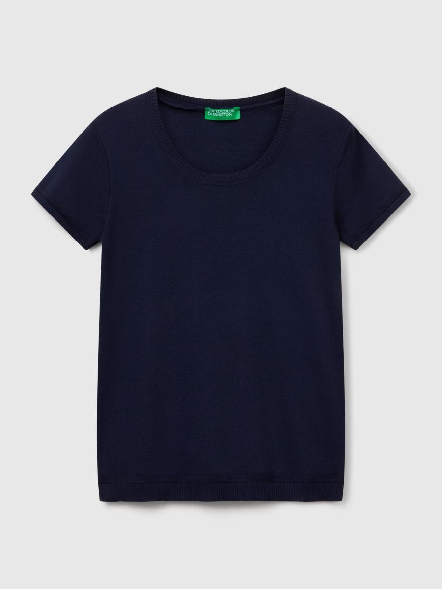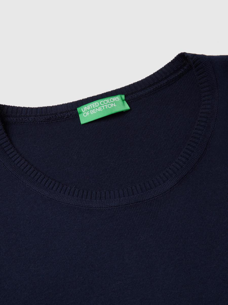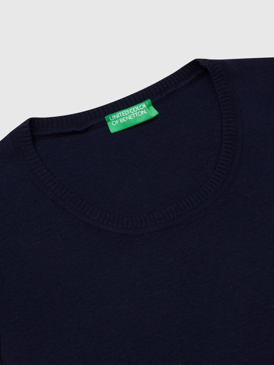 Benetton ženski džemper sa okruglim izrezom kratkih rukava od čistog triko pamuka. Udoban i svestran, kombinuje se sa mnogim odevnim predmetima. Nosite ga samostalno ili kao prolećni komad ispod jakne ili sakoa.