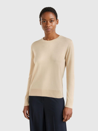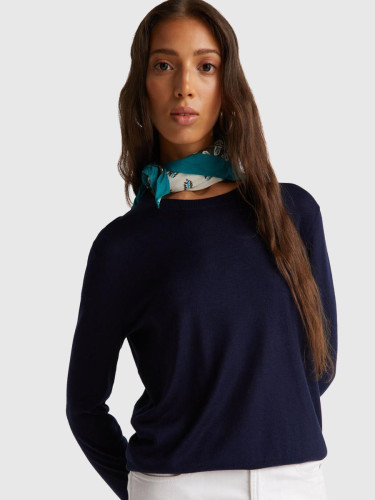 Sisley ženski džemper regular fit kroja od mešavine viskoze, sa dekolteom i dugim rukavima.
