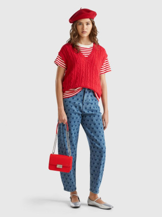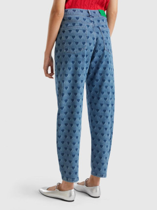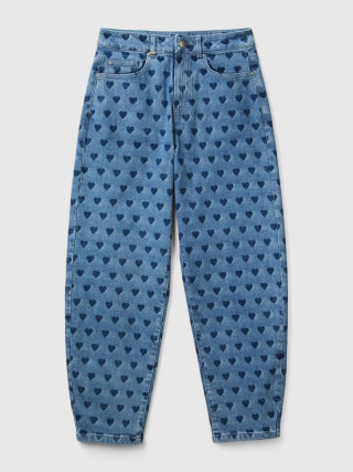Benetton ženske pantalone balon kroja sa laserskim printom srca. Dizajn sa pet džepova, patent zatvarač i otvaranje dugmadi.