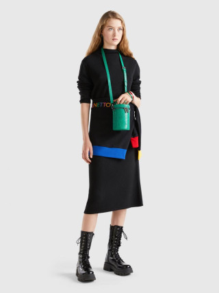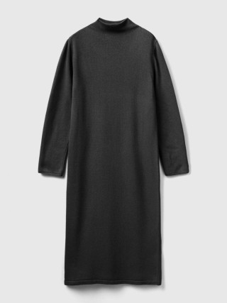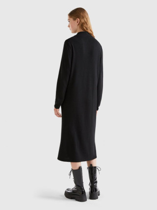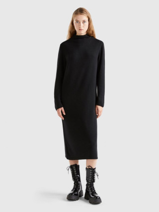 Benetton ženska haljina dugih rukava od tople mešavine vune, viskoze i kašmira. Midi dužine, suženog i opuštenog kroja. Okovratnik, zavrtanje na izrezu i na kraju rukava. Udobna i svestrana, savršene za slobodno vreme.