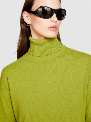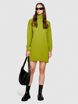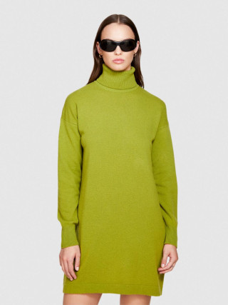Sisley ženska kratka haljina model džempera od meke vune. Rebrasto tkana rolka kragna i dugi rukavi sa blago spuštenim ramenima.
