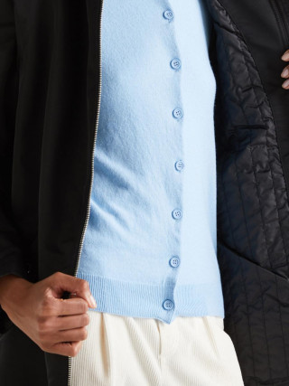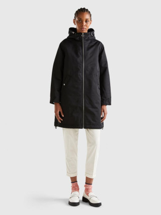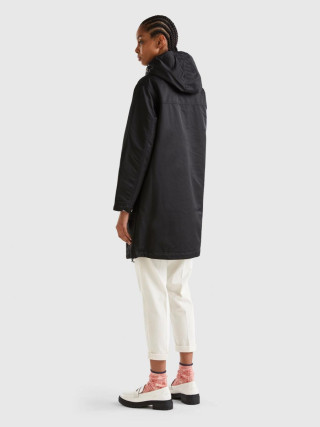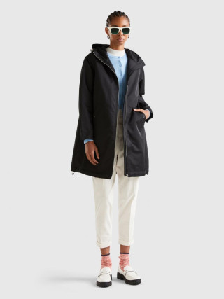 Benetton ženska jakna otporna na kišu od najlonskog kepera sa laganom podstavom. Praktična kapuljača sa vezicom i dugmićima. Džepovi sa strane sa dugmićima za kopčanje i uzicom na dnu. Idealno za kišne dane.