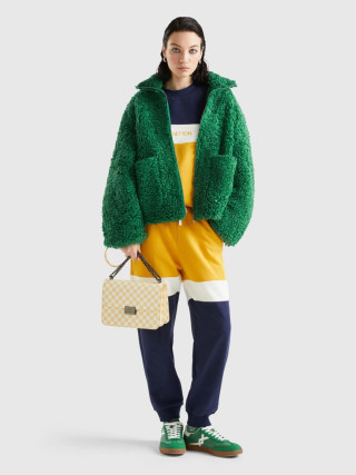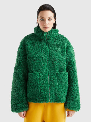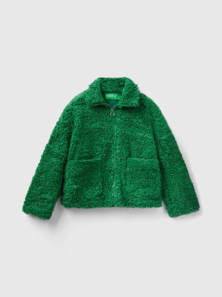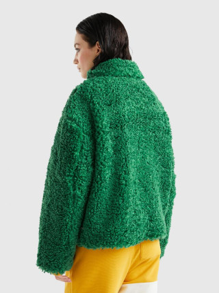 Benetton ženska jakna dugih rukava od mekanog i toplog veštačkog krzna. Opušten kroj i dužina do kukova. Praktično kopčanje sa patentnim zatvaračem i našivenim džepovima na prednjoj strani.