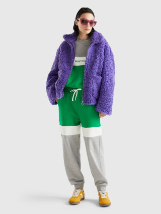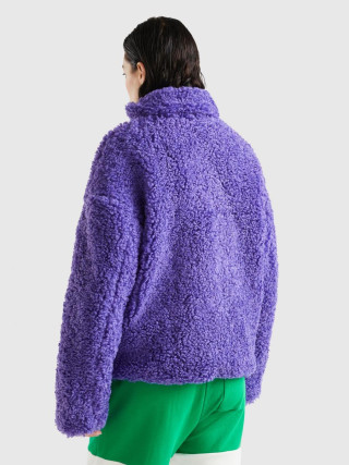 Benetton ženska jakna dugih rukava od mekanog i toplog veštačkog krzna. Opušten kroj i dužina do kukova. Praktično kopčanje sa patentnim zatvaračem i našivenim džepovima na prednjoj strani.