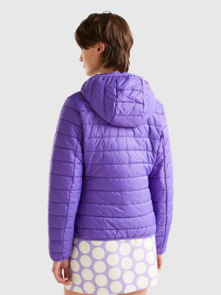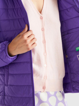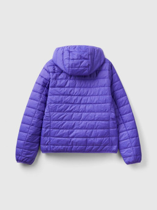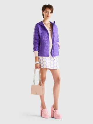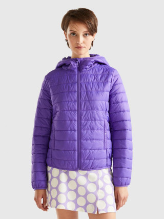 Benetton ženska pufer jakna sa kapuljačom od najlona Rain Defender i normalnog kroja. Kopčanje napred sa patentnim zatvaračem do brade, prednji džepovi sa dugmetom. Topla, ali lagana podloga od reciklirane vate, proizvedena od PET plastičnih boca. Savršeno kako se godišnja doba menjaju.