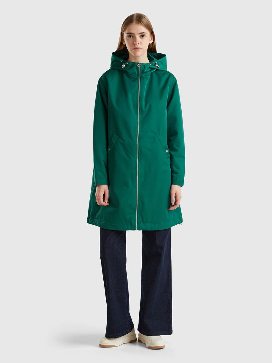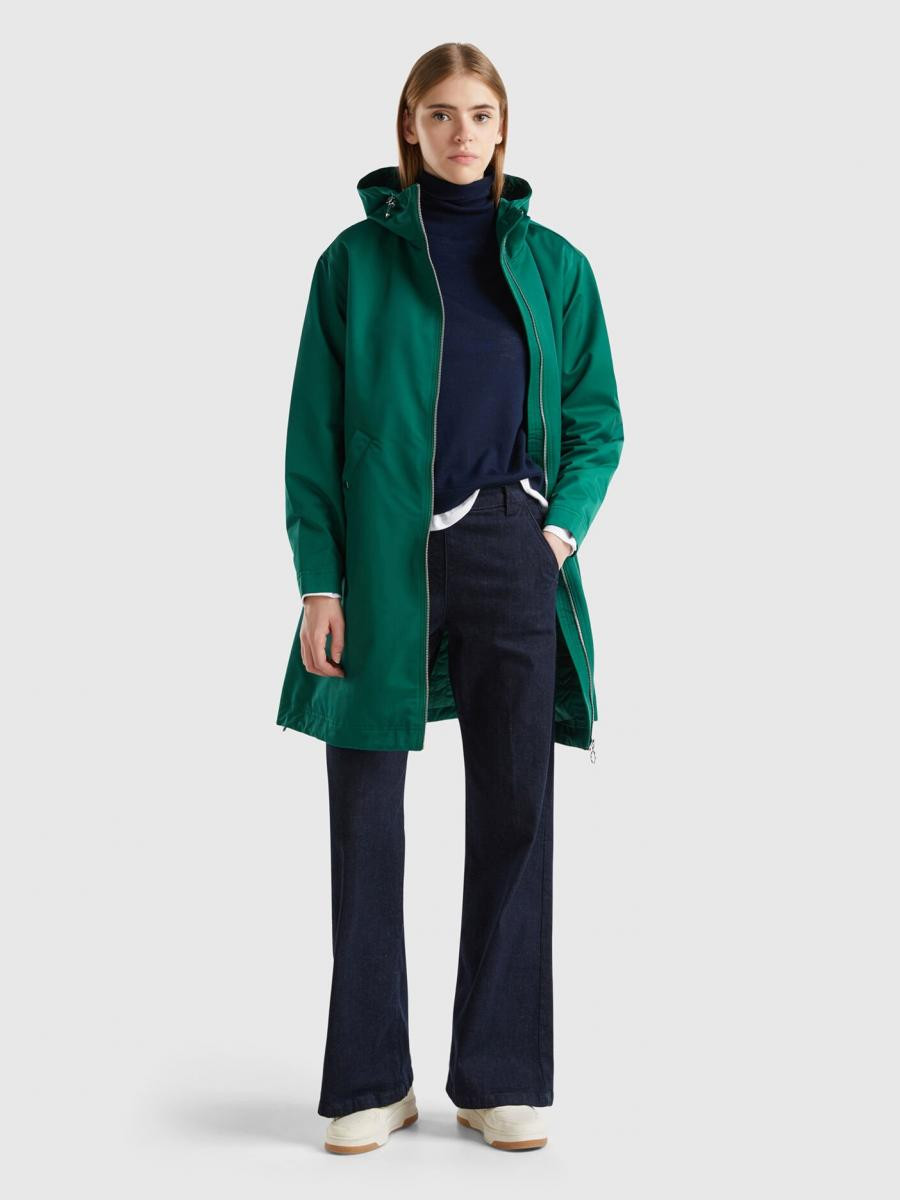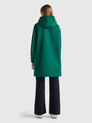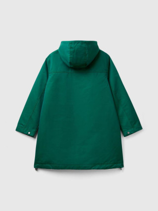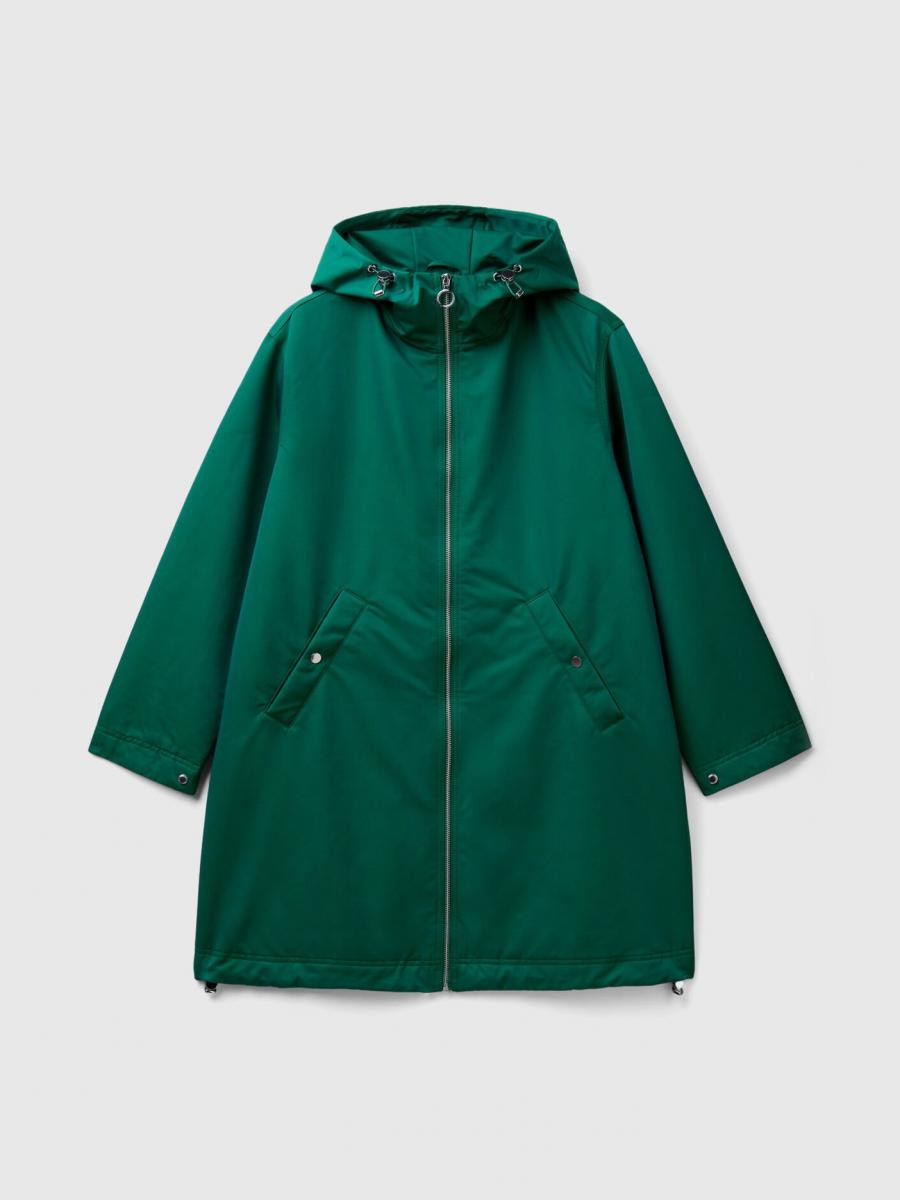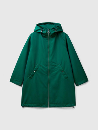 Benetton ženska jakna otporna na kišu od najlonskog kepera sa laganom podstavom. Praktična kapuljača sa vezicom i dugmićima. Džepovi sa strane sa dugmićima za kopčanje i uzicom na dnu. Idealno za kišne dane.