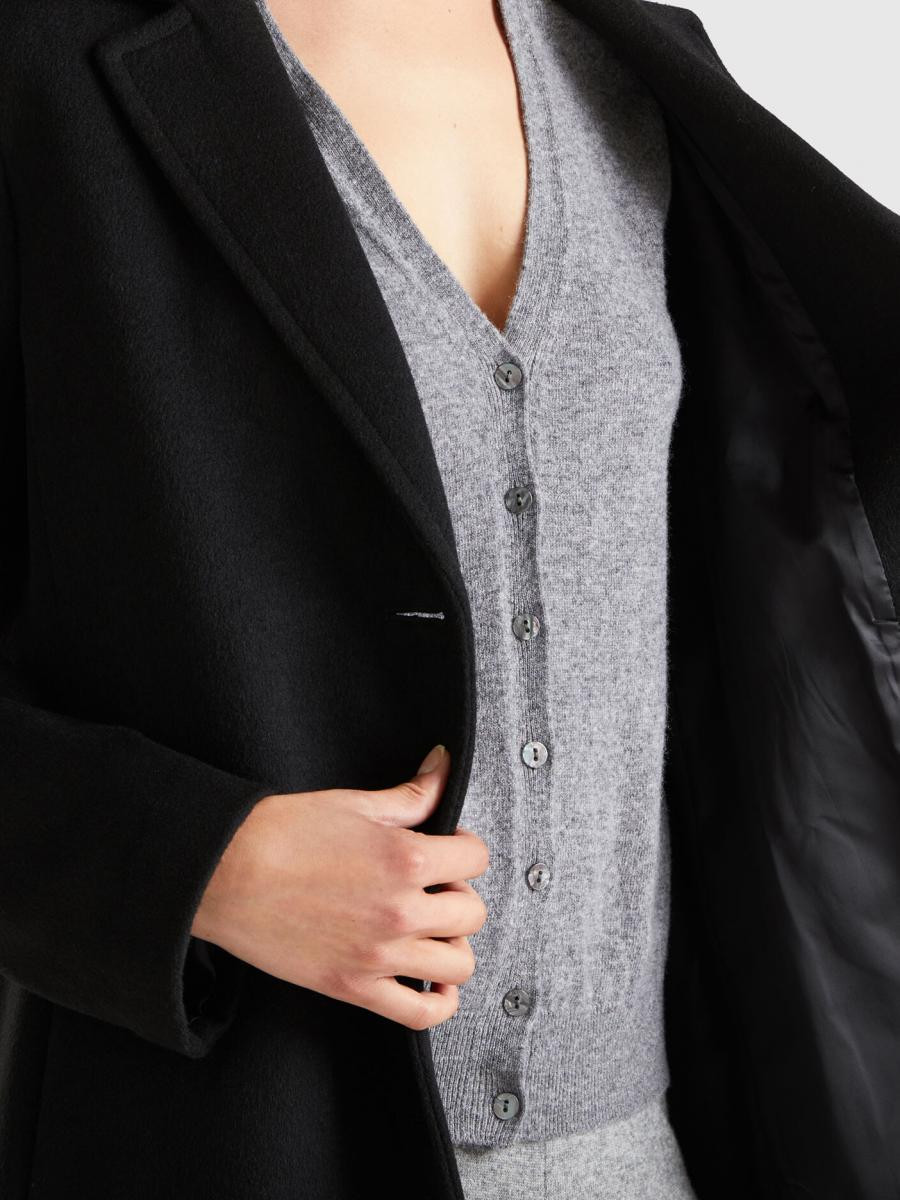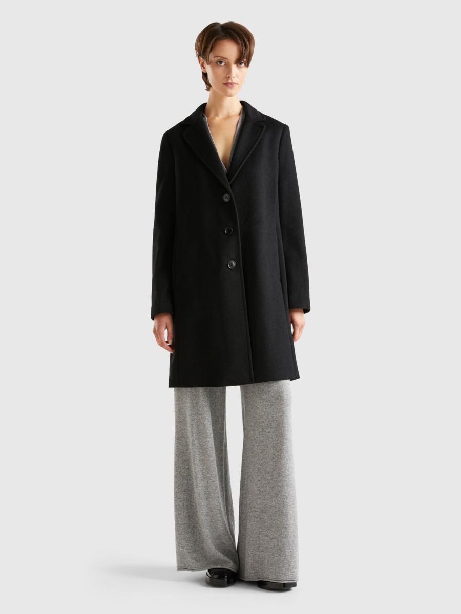Benetton ženski kaput regular fit kroja podstavljen tkaninom od mešavine vune. Dužina iznad kolena i klasični rever na preklop. Kopčanje dugmićima i džepovi uvučeni sa strane. Taman formalno, pogodno i za kancelariju.