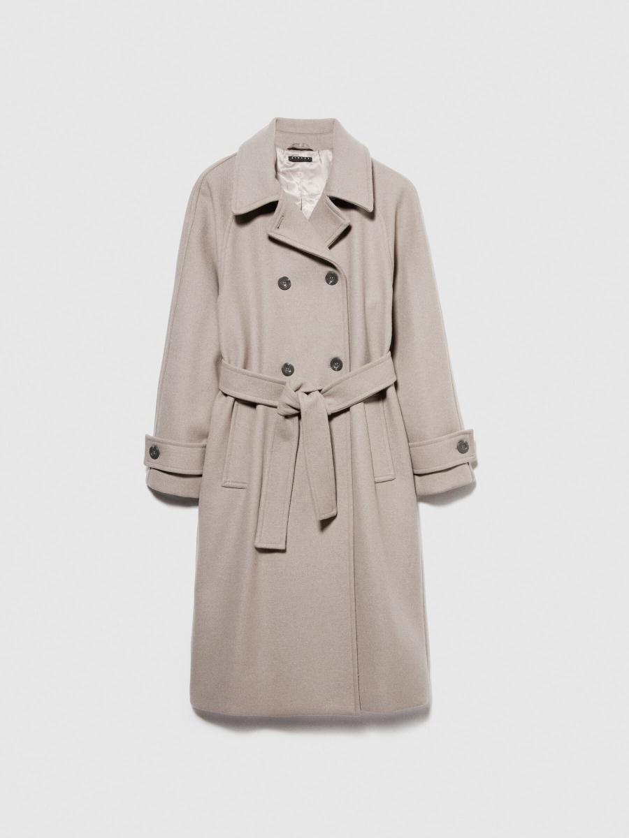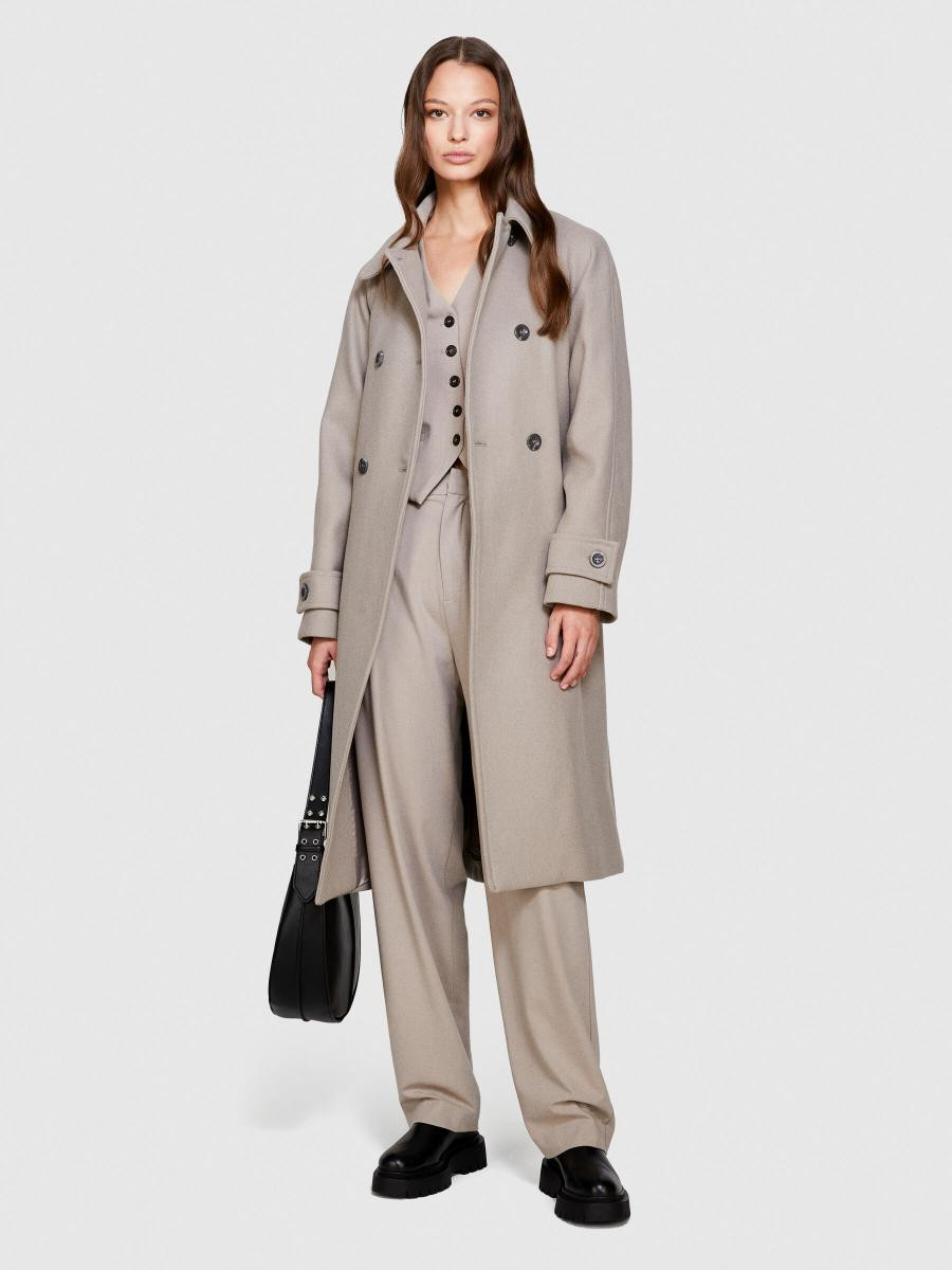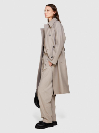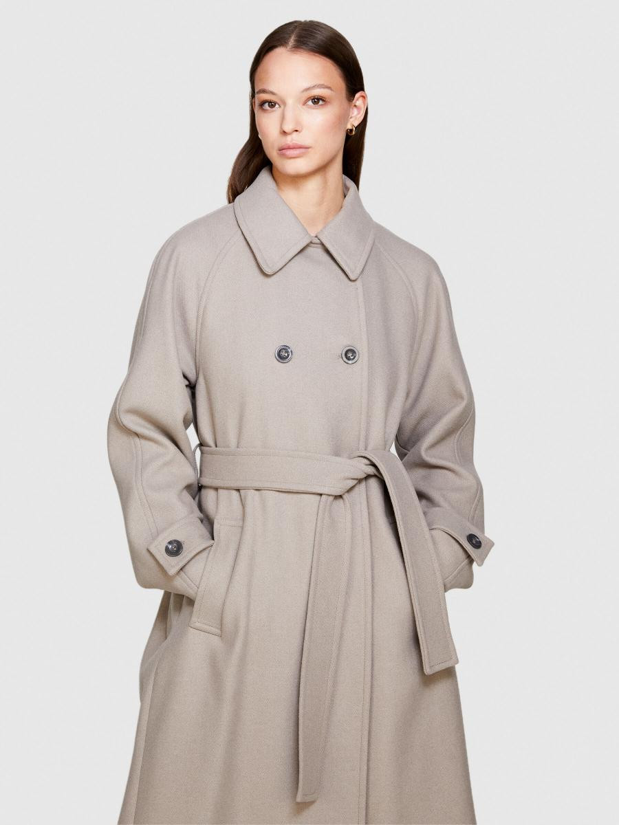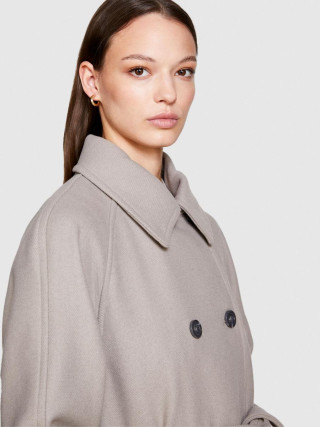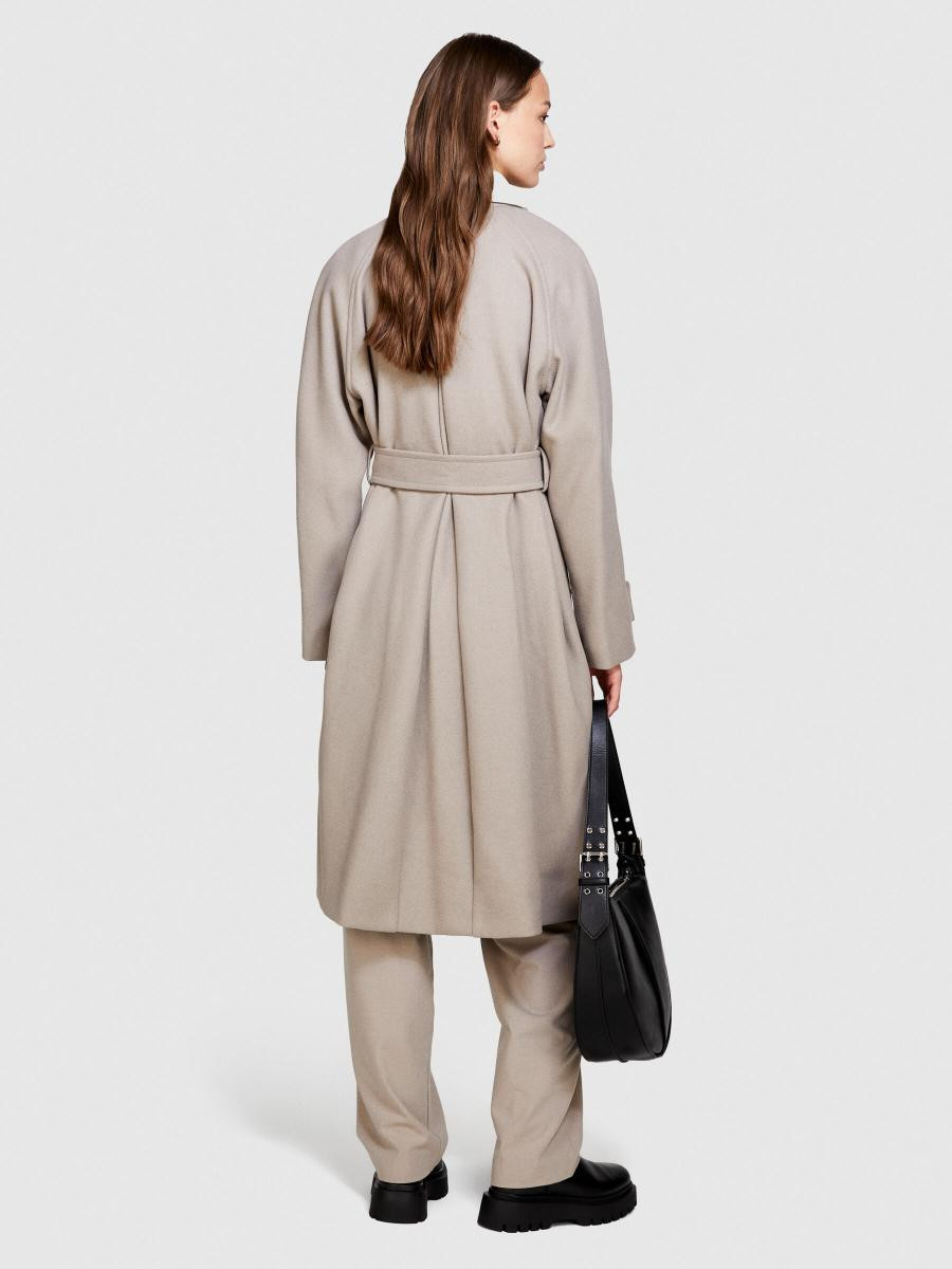 Sisley ženski ofersajz kaput od tkanine od mešavine vune, sa pojasom za vezanje u struku. Kragna košulje, duplo kopčanje i dugi raglan rukavi sa kaiševima na zglobovima.