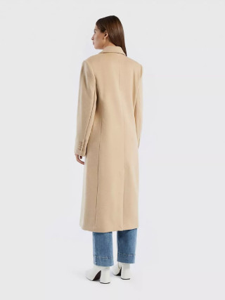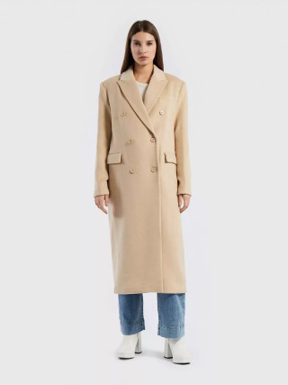 Benetton ženski dugi kaput sa duplim kopčanjem od meke tkanine od mešavine vune, podstavljen od mešavine viskoze. Dužina ispod kolena i izrez na reveru. Prišiveni džepovi sa preklopom na prednjoj strani, prorez na leđima. Dovoljno formalno, pogodno i za kancelariju.