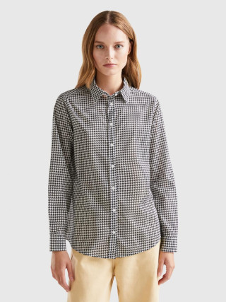 Benetton ženska košulja dugih rukava od laganog 100% pamuka. Klasična kragna, prednje kopčanje dugmićima i manžetne sa dugmićima. Štampa sa šarama. Udobna i za svakodnevnu upotrebu, pogodan je za višekratnu upotrebu.