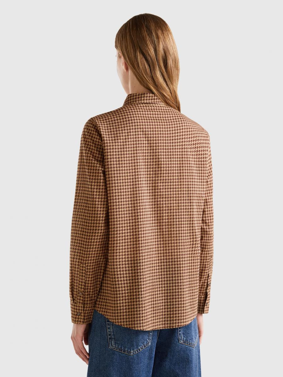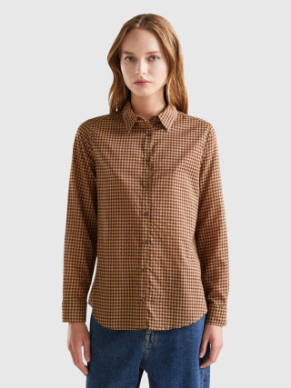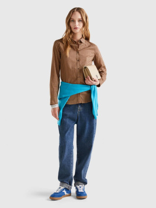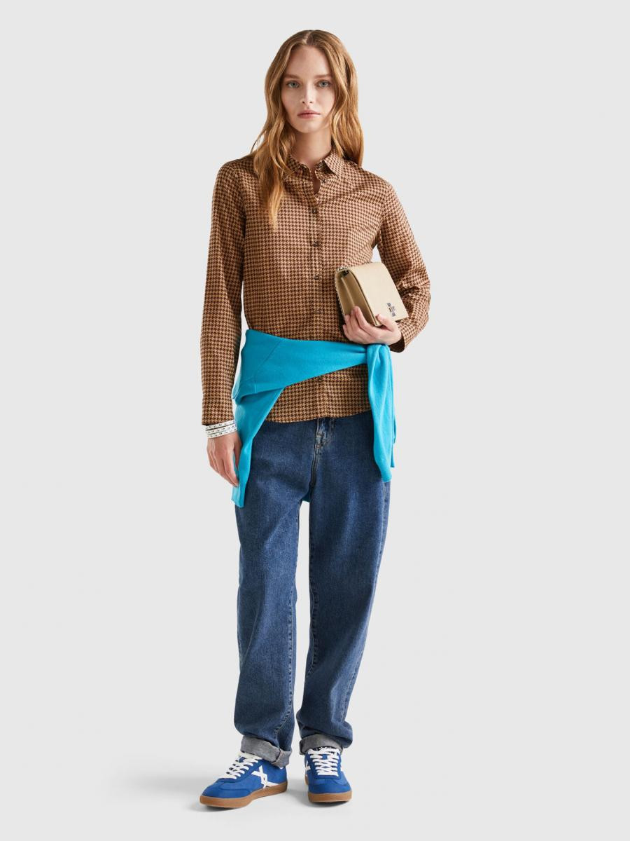 Benetton ženska košulja dugih rukava od laganog 100% pamuka. Klasična kragna, prednje kopčanje dugmićima i manžetne sa dugmićima. Štampa sa šarama. Udobna i za svakodnevnu upotrebu, pogodan je za višekratnu upotrebu.