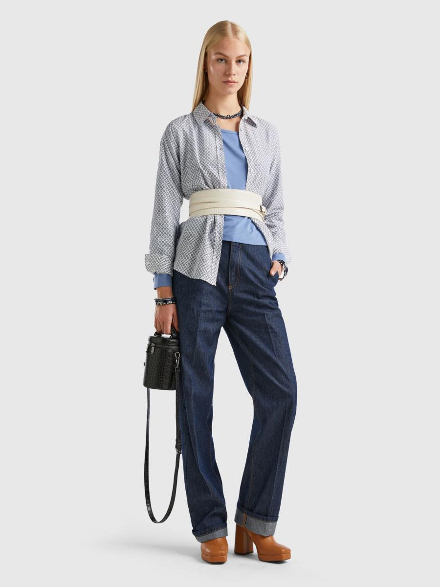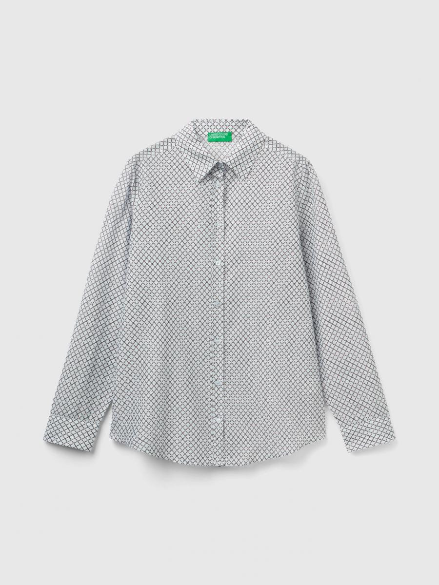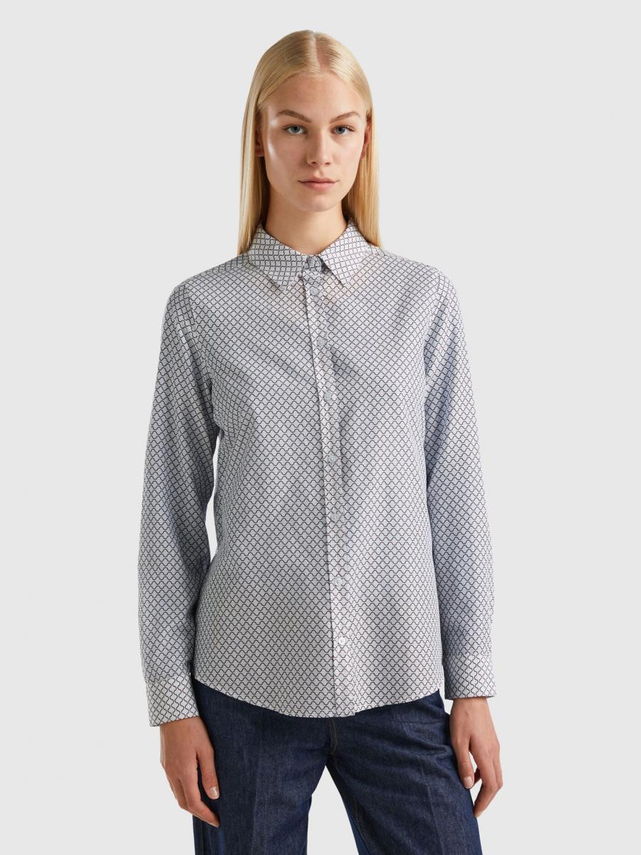 Benetton ženska košulja dugih rukava od laganog 100% pamuka. Klasična kragna, prednje kopčanje dugmićima i manžetne sa dugmićima. Štampa sa šarama. Udobna i za svakodnevnu upotrebu, pogodan je za višekratnu upotrebu.