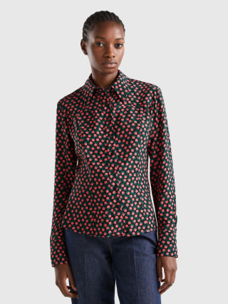 Benetton ženska košulja od čiste viskozne tkanine sa cvetnim dezenom na celom delu. Šiljati kragna, prednji otvor na dugmiće, dugi rukavi sa visokom manžetnom. Strukani i udoban kroj, za cool i ženstveni izgled.