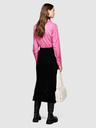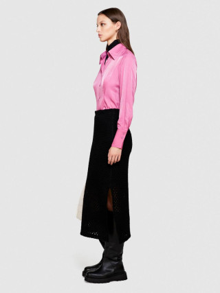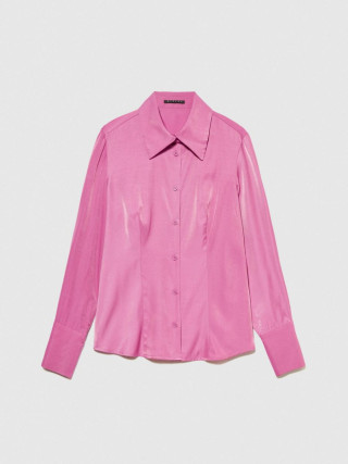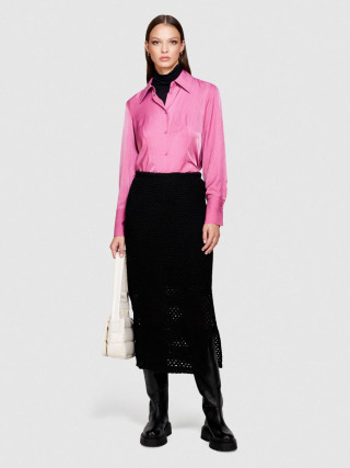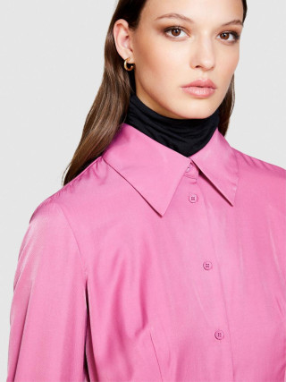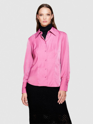 Sisley ženska slim fit košulja od satena od mešavine viskoze. Kragna sa izrezom, kopčanje na prednjoj strani i dugi rukavi.