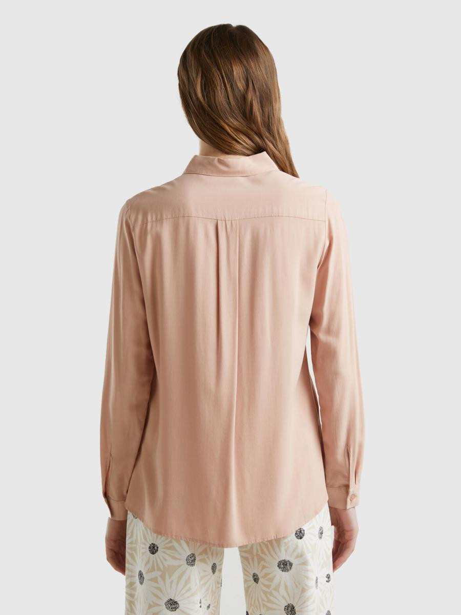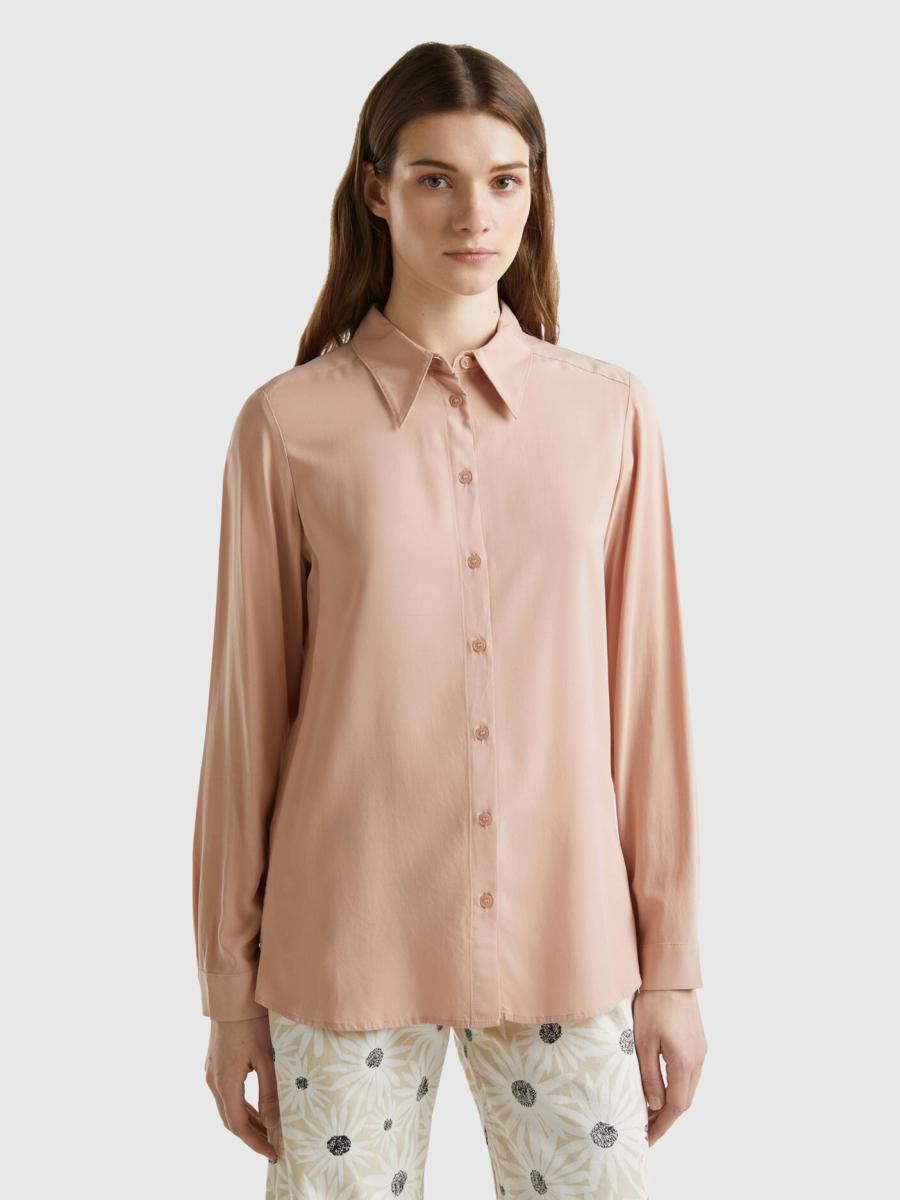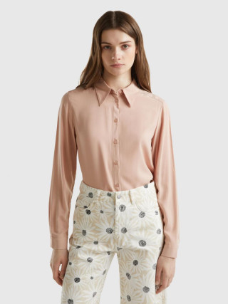 Benetton ženska košulja dugih rukava regular fit model. Klasična kragna i prednje kopčanje. Izrađena od 100% održive viskoze, proizveden od drveta iz sertifikovanih šuma i poštujući najviše ekološke standarde.