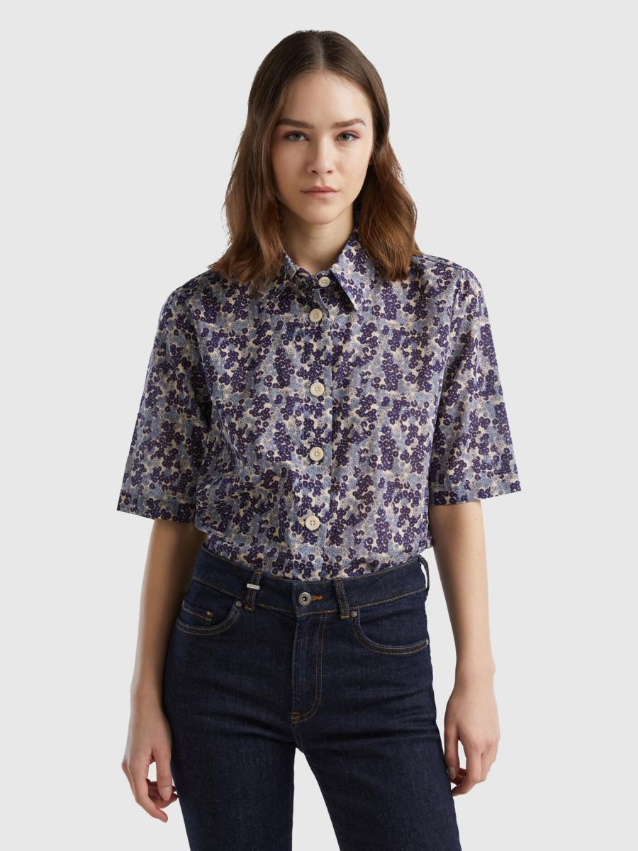 Benetton ženska košulja kratkih rukava od čistog laganog pamuka, regular fit model. Zašiljena kragna i prednji otvor za dugmićima. Šareni print po celoj odeći, savršen za leto.