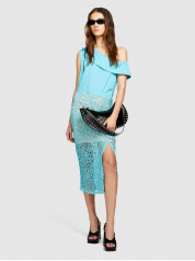 Sisley ženski top na jedno rame od lepršavog satena, sa oblikovanom trakom na dekolteu i kratkim kimono rukavima.