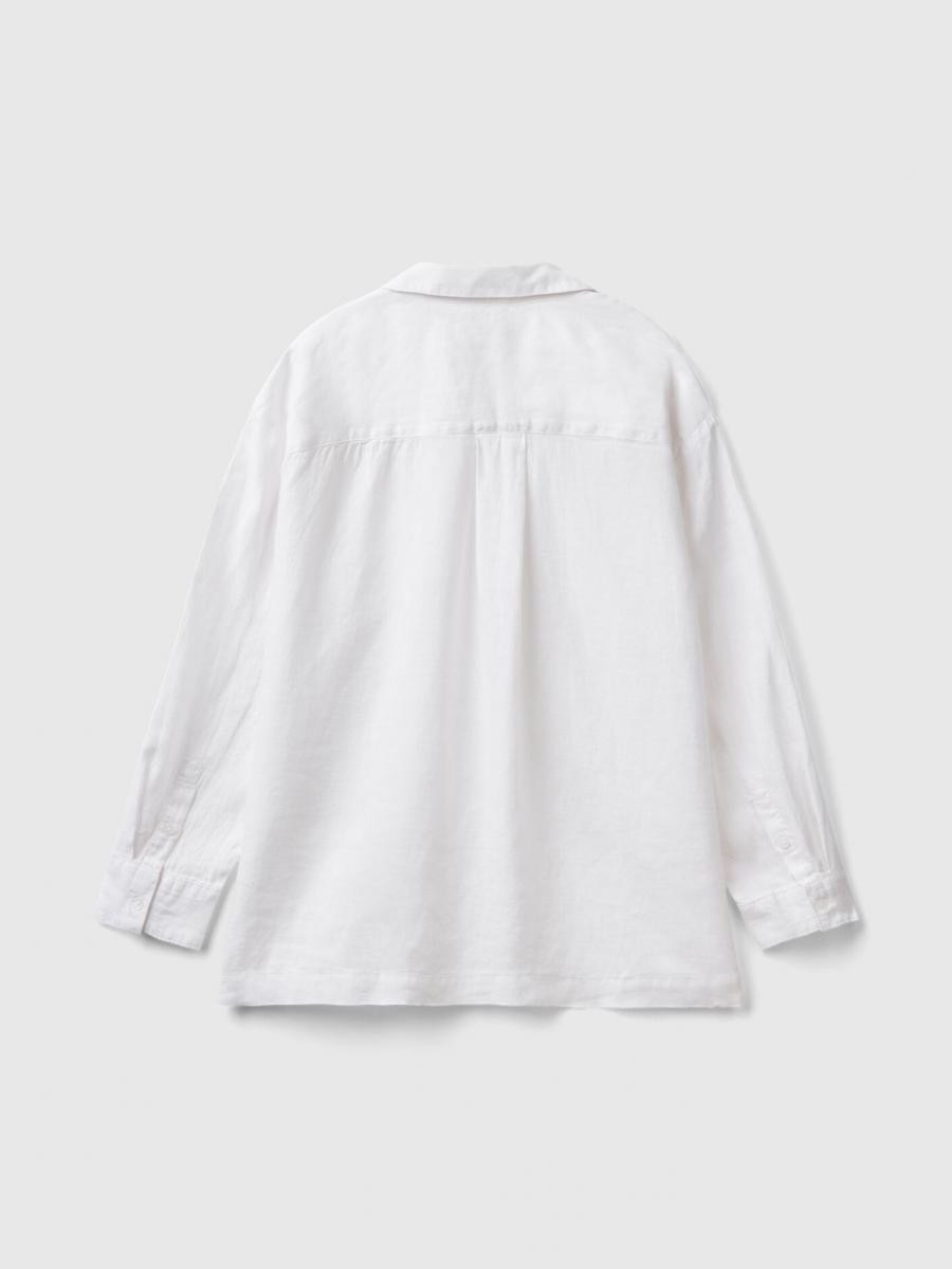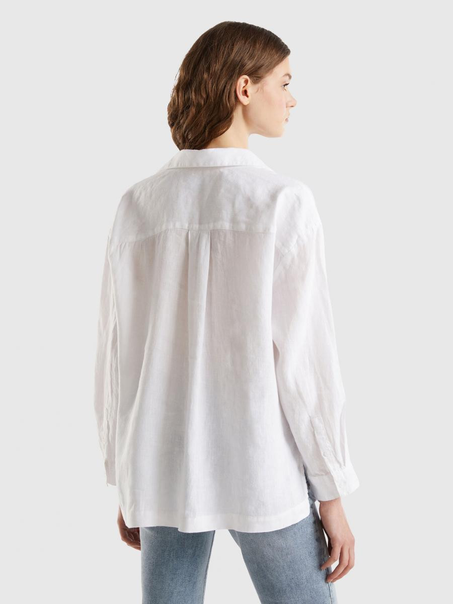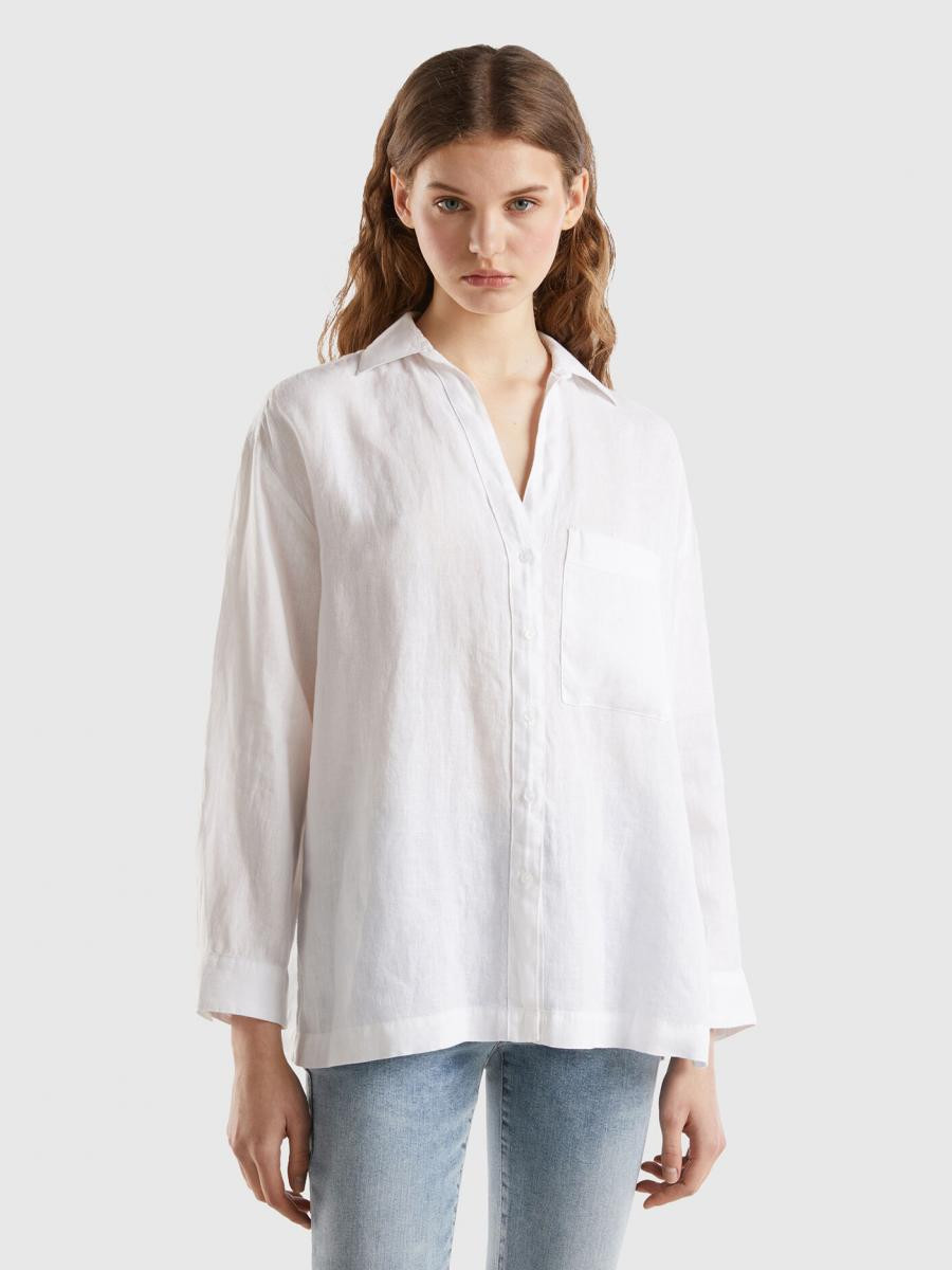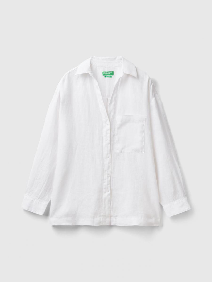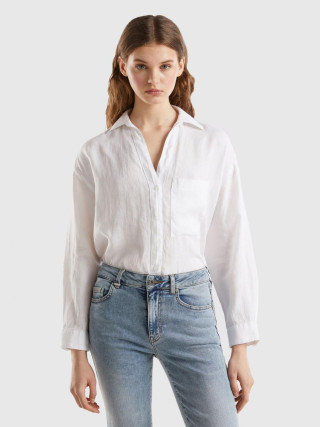 Benetton ženska lagana košulja opuštenog kroja sa prorezima sa strane. Dužina ispod kukova, klasična kragna i V-izrez. Kopčanje dugmićima na prednjij strani i džep našiven na prednjoj strani. Ovaj komad je napravljen od čistog lana: otpornog biljnog vlakna koje se može reciklirati i koji troši minimalne prirodne resurse.