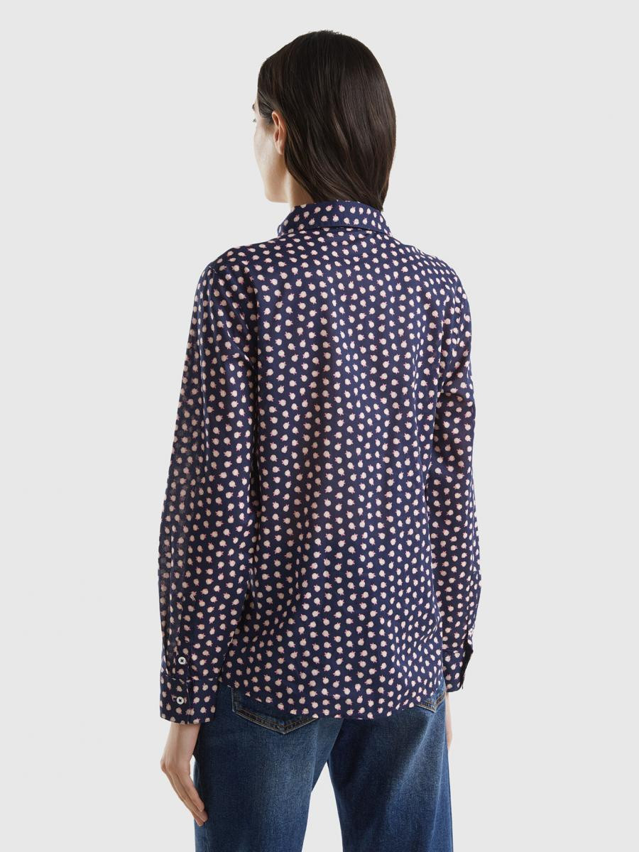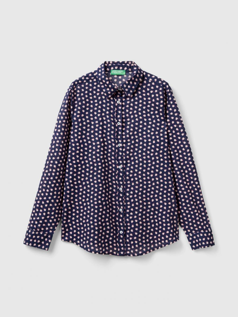 Benetton ženska košulja dugih rukava od laganog 100% pamuka. Klasična kragna, prednje kopčanje dugmićima i manžetne sa dugmićima. Štampa sa šarama. Udobna i za svakodnevnu upotrebu, pogodan je za višekratnu upotrebu.