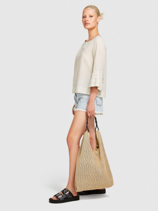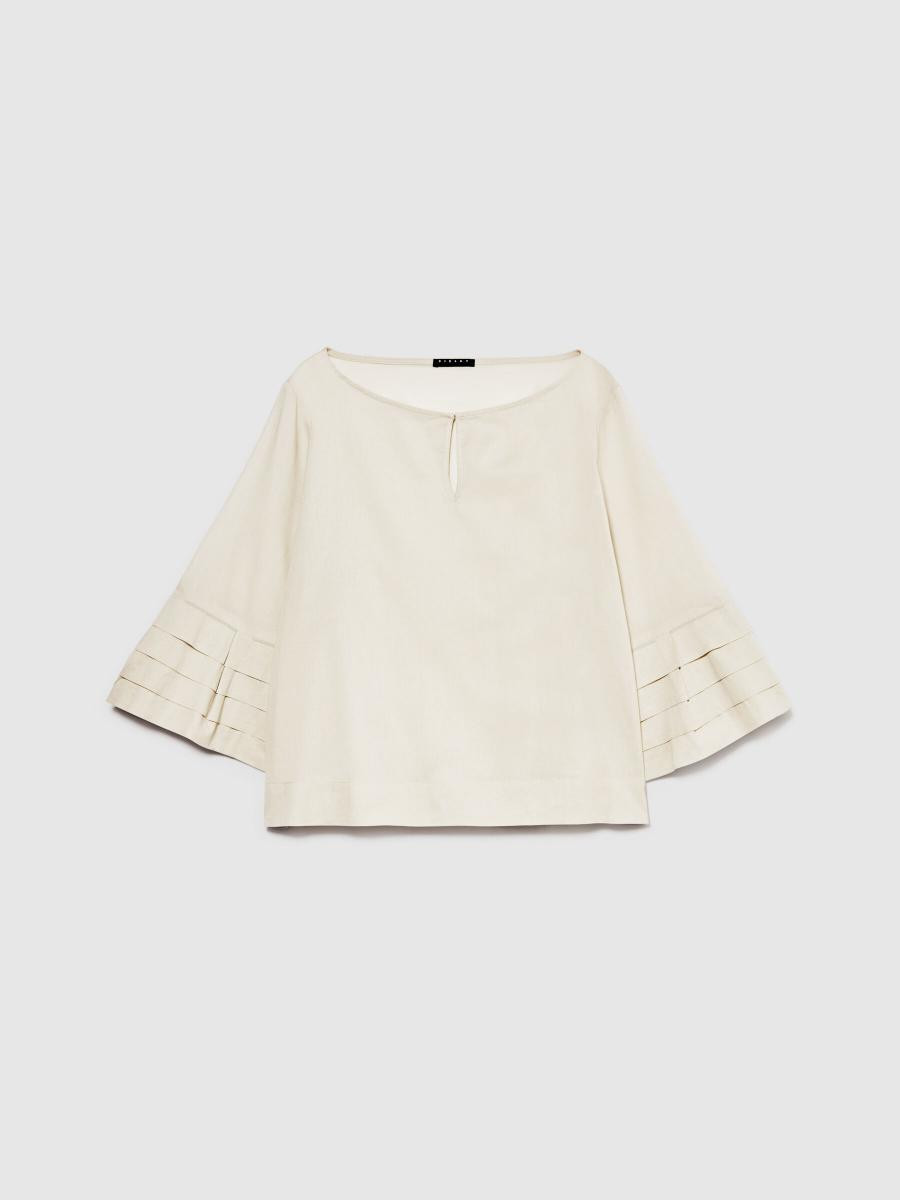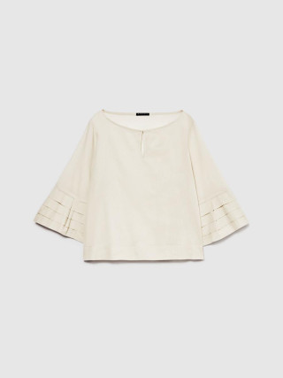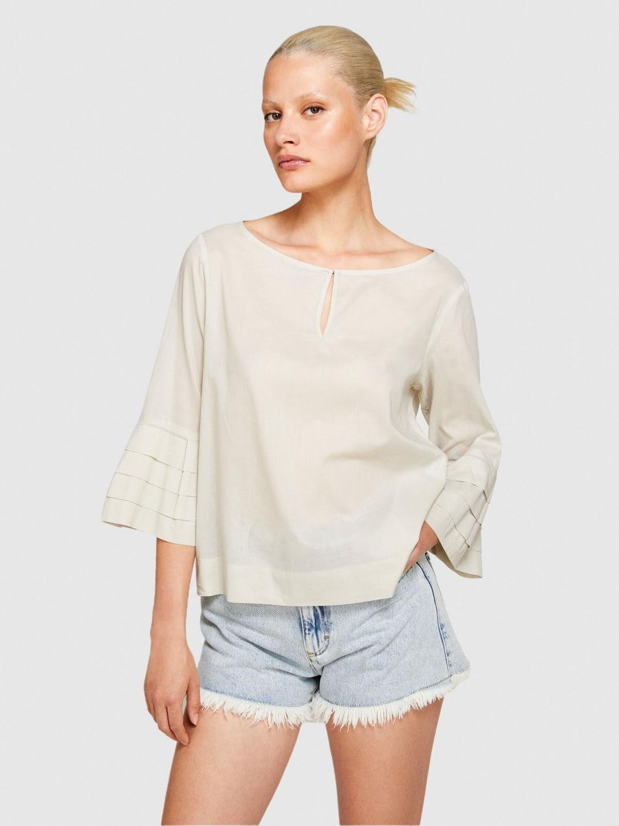 Sisley ženska kaftan bluza od 100% laganog pamučnog muslina. Okrugli izrez sa motivom otvaranja ključaonice i rukavima do lakta sa plisiranim motivom.