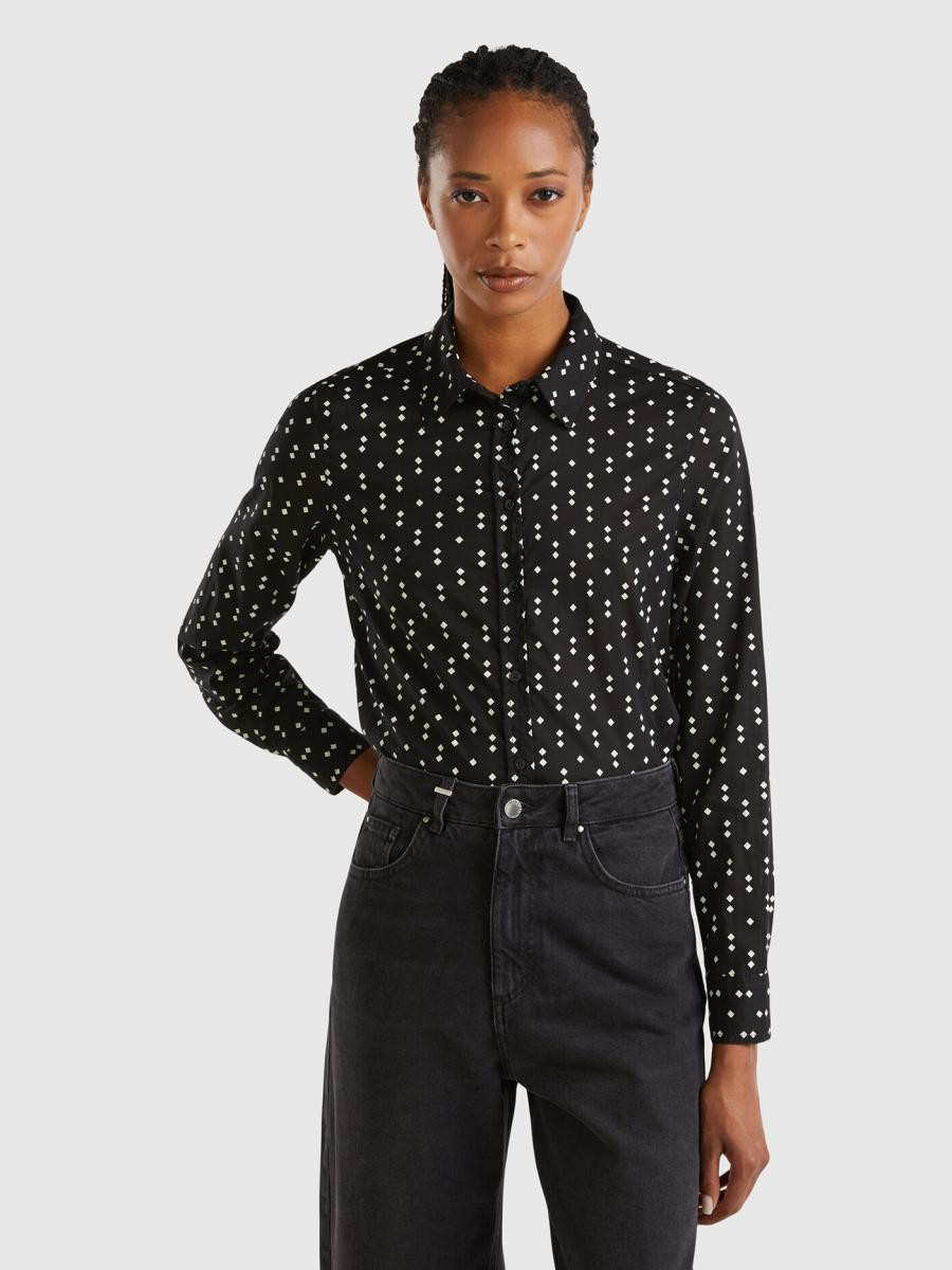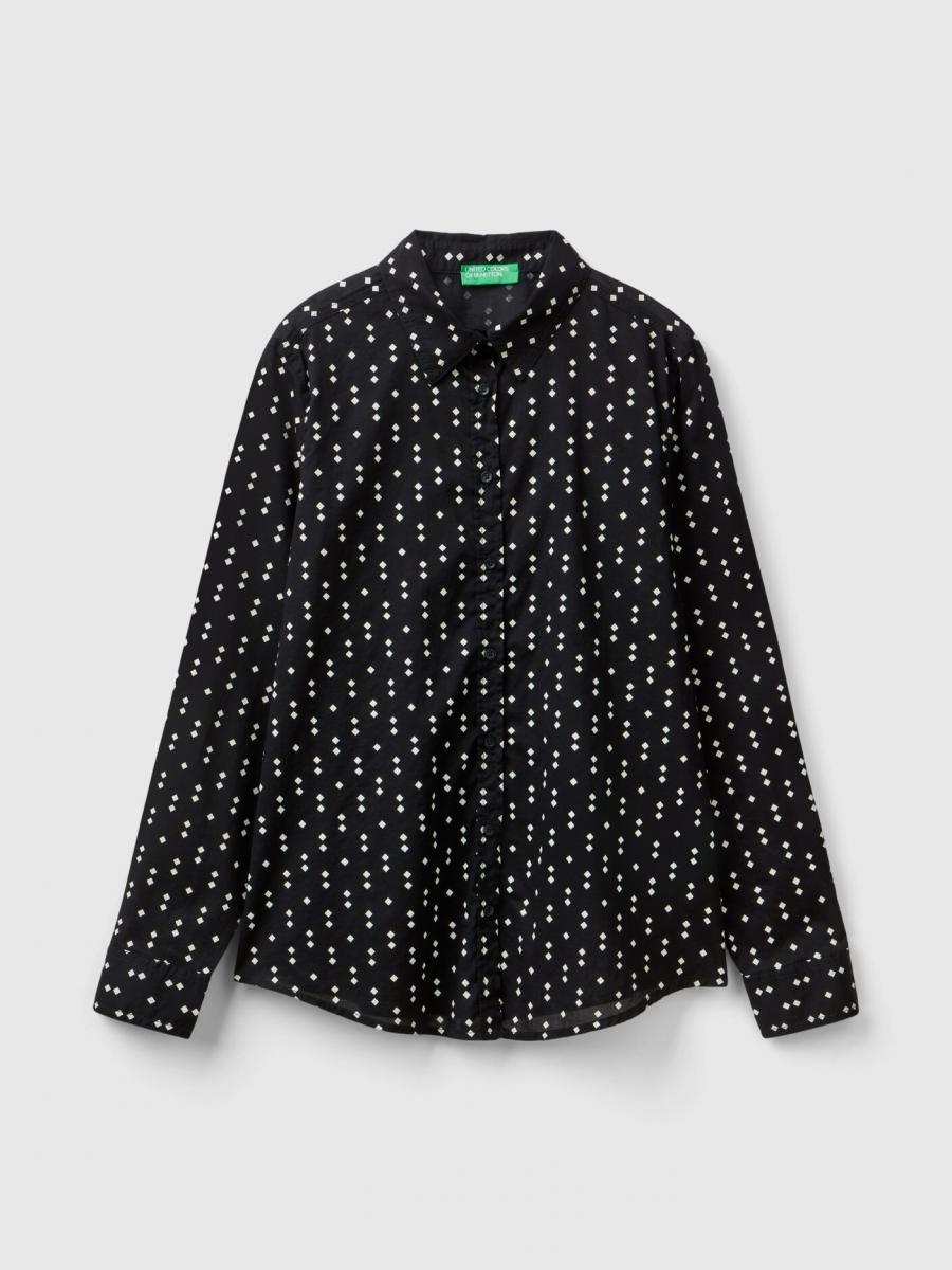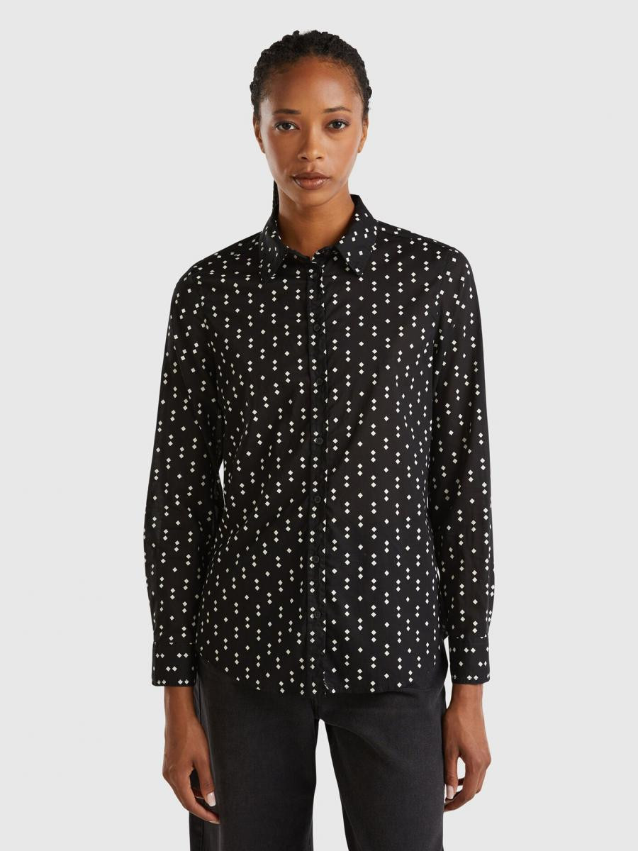 Benetton ženska košulja dugih rukava od laganog 100% pamuka. Klasična kragna, prednje kopčanje dugmićima i manžetne sa dugmićima. Štampa sa šarama. Udobna i za svakodnevnu upotrebu, pogodan je za višekratnu upotrebu.