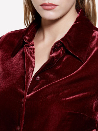 Sisley ženska košulja od glatkog somota od mešavine viskoze, sa prednjim kopčanjem na dugmad i dugim rukavima sa visokim manžetnama.