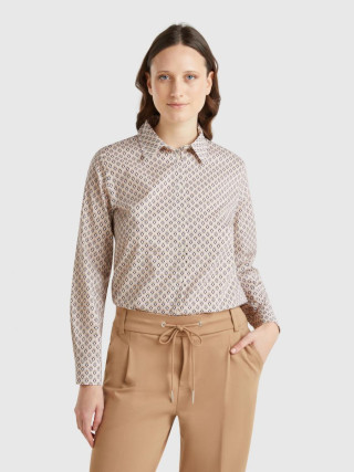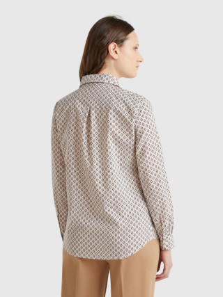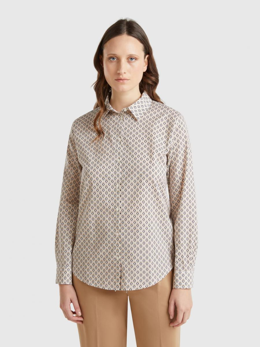 Benetton ženska košulja od pamučnog muslina sa printom, regularnog kroja. Ima duge rukave sa manžetnama na kopčanje, pružajući klasičan i elegantan izgled. Lagani i prozračni materijal čini je idealnom za svakodnevne ili poslovne kombinacije, uz dodatni stil kroz atraktivni print.